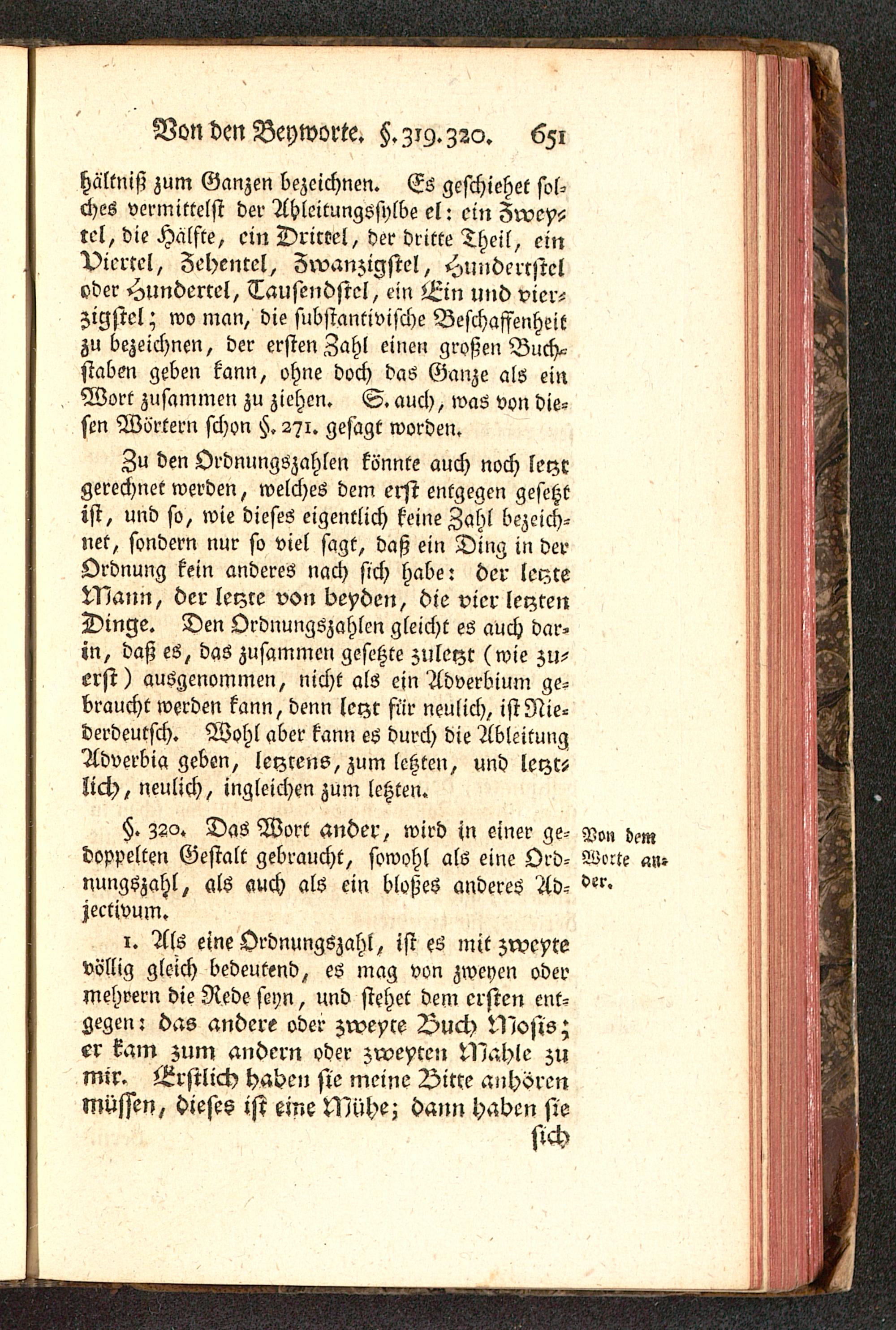 §. Z2o. Das Wort ander, wird in einer ge- Von demdoppelten Gestalt gebraucht, sowohl als eine Ord- Worte an»nungszahl, als auch als ein bloßes anderes Ad-jectivum.