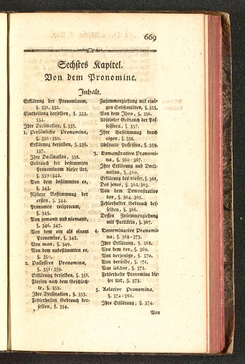 4. Determinative Pronomi-na, §. Z58- 373.Ihre Erklärung, Z6z.Von dem der, Z. 36Y.Von derjenige, §, 370.Von derselbe, Z. ?7i.Vmr solcher, Z. 372.Fehlerhafte Pronomina die-ser Art, S. 373-