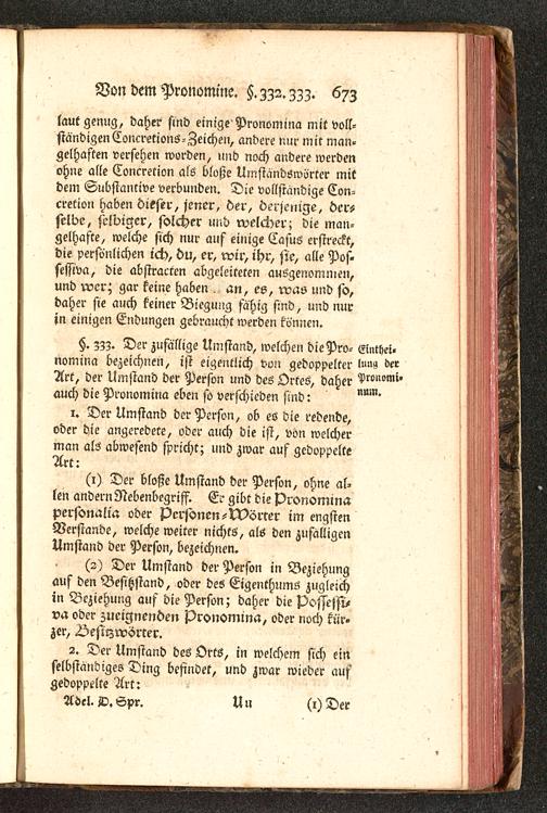 1. Der Umstand der Person, ob es die redende,oder die angeredete, oder auch die ist, von welcherman als abwesend spricht; lind zwar auf gedoppelteArt: