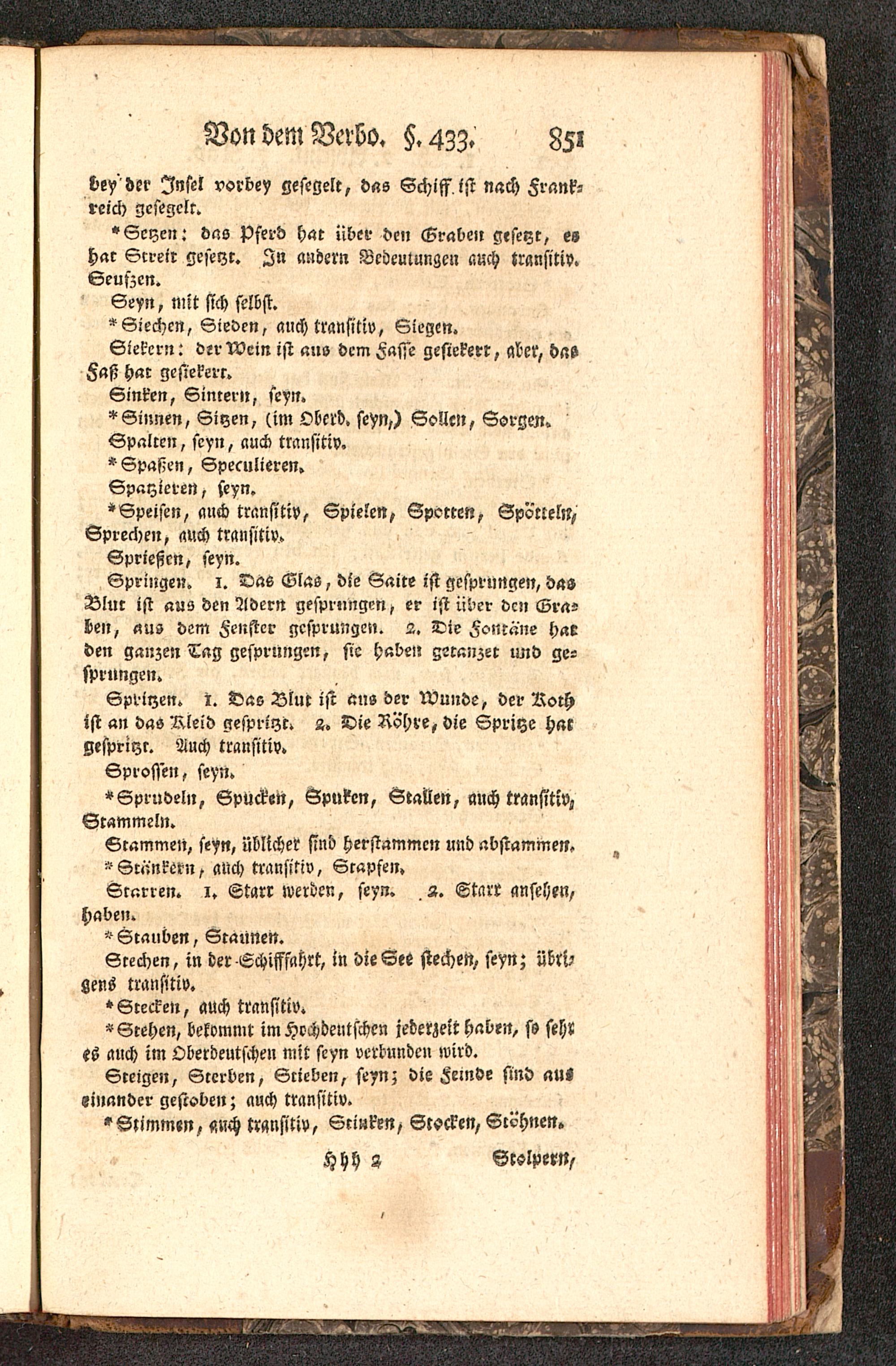 »Sprudeln, Spucken, Spuken, Stallen, mich transitiv^Stammeln.