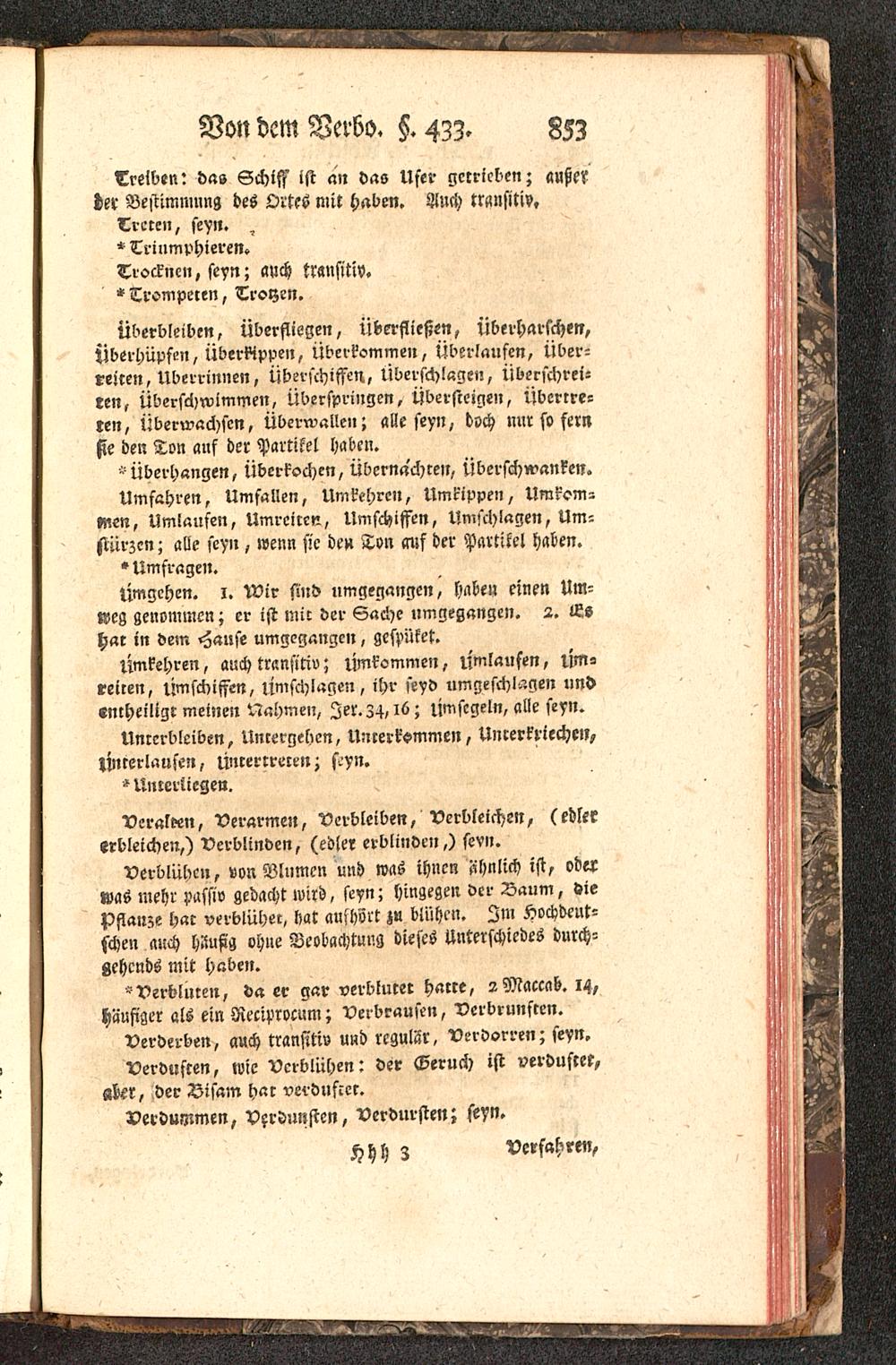 Umkehren, auch transitiv; umkommen, umlaufen, um-reiten, umschiffen, umschlagen, ihr seyd umgeschlagen undentheiligt meinen Nahme», Ier.Z4, lü; umsegeln, alle seyn.
