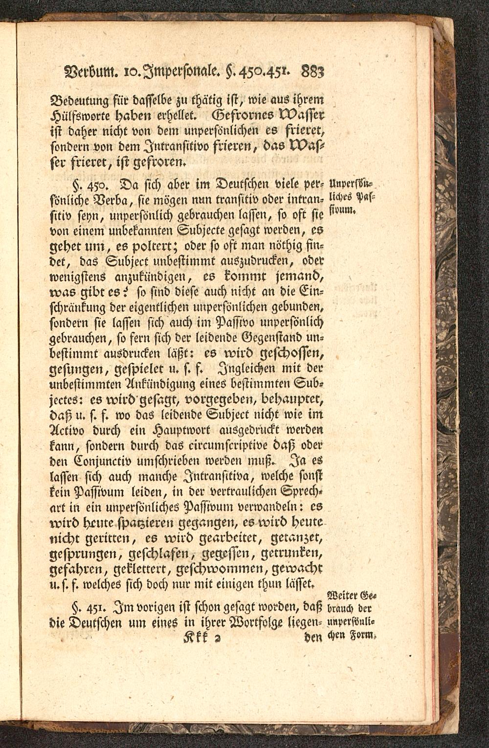 §. 451. Im vorigen ist schon gesagt worden, daß brauch derdie Deutschen um eines in ihrer Wortfolge liegen- unpersiwli-