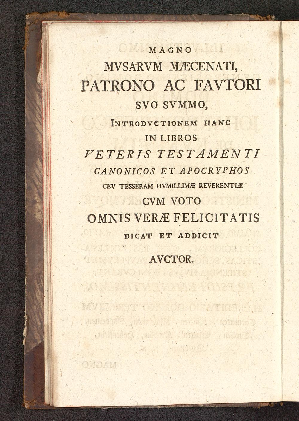 SVO SVMMO,Introdvctionem hancIN LIBROSVE TERIS TESTAMENTI