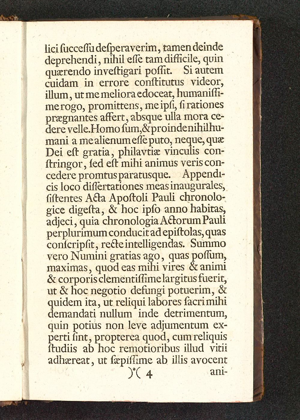 lici fuccefiu defperaverim, tamen deindedeprehendi, nihil efle tamdifficile, quinquserendo inveftigari poffit. Si autemcuidam in errore conftitutus videor,illum, ut me meliora cdoceat, humaniffi-merogo, promittens, meipfi, firationesprsgnantes afFert, absque ulla mora ce-dere velle.Homo mm,&proindenihilhu-mani a mealienumefleputo, neque,qujeDei eft gratia, philavtise vinculis con-ftringor, fed eft mihi animus veriscon-cedere promtusparatusque. Appendi-cis loco difiertationes measinaugurales,fiftentes Acla Apoftoli Pauli chronolo-gice digefta, & hoc ipfo annohabitas,adjeci, quia chronologiaAcliorumPauliperplurimum conducit ad epiftolas, quasconlcripfit, recleintelligendas. Summovero Numini gratias ago, quas poflum,maximas, quod eas mihi vires & animi& corporis clementiffime largitus fuerit,ut & hoc negotio defungi potuerim, &quidem ita, ut reliqui labores facrimihidemandati nullum inde detrimentum,quin potius non leve adjumentum ex-perti fint, propterea quod, cumreliquisftudiis ab hoc remotioribus iilud vitiiadhsereat, ut farpillime ab illis avocent