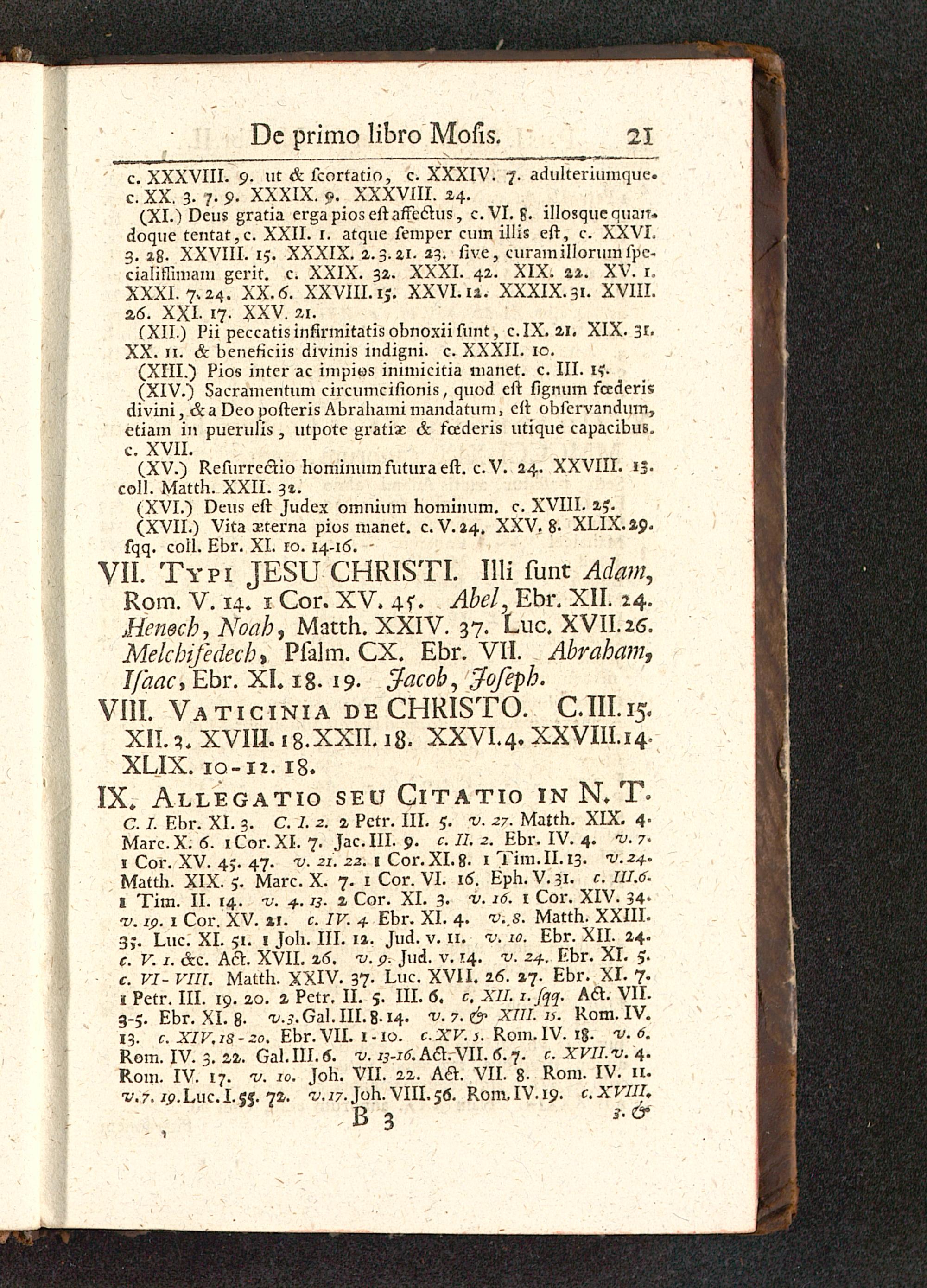 VII. Typi JESU CHRISTI. Illi funt Adam,Rom. V. 14. 1 Cor. XV. 4?. Abel, Ebr. XII. 24.Henecb ,Noab, Matth. XXIV. 37. Luc. XVII.25.Melcbifedech* Pfalm. CX. Ebr. VII. Abraham,I/aac, Ebr. XI. 18. 19. Jacob, fofeph.
