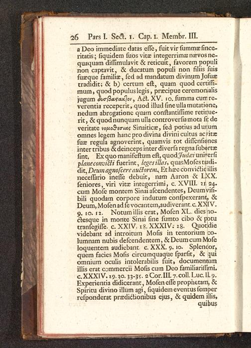 a Deo immediate datas efie, fuitvir fummaefince-ritatis; liquidem fuos vkx integerrimasnaevosne-quaquam diflimulavit & reticuit, favorem populinon captavit, & ducatum populi non filiis fuisfuaeque familise, fed ad mandatum divinum Jofuaetradidit; & b) ccrtum eft, quam quod certifii-mum> quodpopuluslegis, praecipue ceremonialisjugum dwrfiitftbKloV) Ach XV. io. fumma cumre-verentia receperit, quod illudfineullamutatione,nedum abrogatione quam conftantifiime rethiue-rit, & quodnunquamullacontroverfiamota ficdeveritate tofio&eo-tite Sinaiticae, fed potius adunumomnes legem hanc pro divina divinicultus acvita;fuae regula agnoverint, quamvis tot diflcnfionesinter tribus &deincepsinterdiverfaregnafubortaefint. Ex quo manifeftum eft, quod.^/^e/ unirerfiplaneconviffi fuerint, legesillas, quasMofestradi-ah,Deum agnofcereauclorem^ Ethaeeconviclioillisneceflario inefle debuit, nam Aaron & LXX.feniores, viri vitx integerrimi, c. XVIII. 21. 24.cum Mofe montem Sinaiafcendentes, Deumvifi-bili quodam corpore indutum confpexerant, &Deum, Mofen ad fe vocantem,audiverant. c. XXIV.9. 10. r2. Notumiilis erat, Mofen XL. diesno-ctesque in monte Sinai fine fumto cibo & potutranfegifle, c. XXIV 18. XXXIV.- 28. Quotidievidebant ad introitum Mofis in tentorium co-lumnam nubis defcendentem, &DeumcumMofeloquentem audiebant. c. XXX. 9.10. Splencor,quem facies Mofis circumquaqiie fparfit, & quiomnium oculis intolerabilis fuit, documentumillis erat commercii Mofis cum Deo familiariflimi.c.XXXIV. 29.30.33-37. 2C0r.HL 7.C0II.LUC.II.9.Experientia didicerant, Mofen eife prophetam, &Spiritu divino illum agi, fiquidem eventus femperrefponderat praedictionibus ejus, & quidem illis,