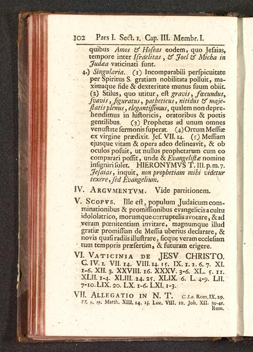 VI. Vaticinia de JESV CHRISTO.C. IV. 1. VII. 14. VIII. 14. if. IX. 1.2.6.7. XI.1-6. XII. 3. XXVIII. 16. XXXV. 3-6. XL. f. 11.XLII. 1-4. XLIII. 24.2r. XLIX. 6. L. 4-9. LII.7-10. LIX. co. LX. 1-6. LXI. 1-3.
