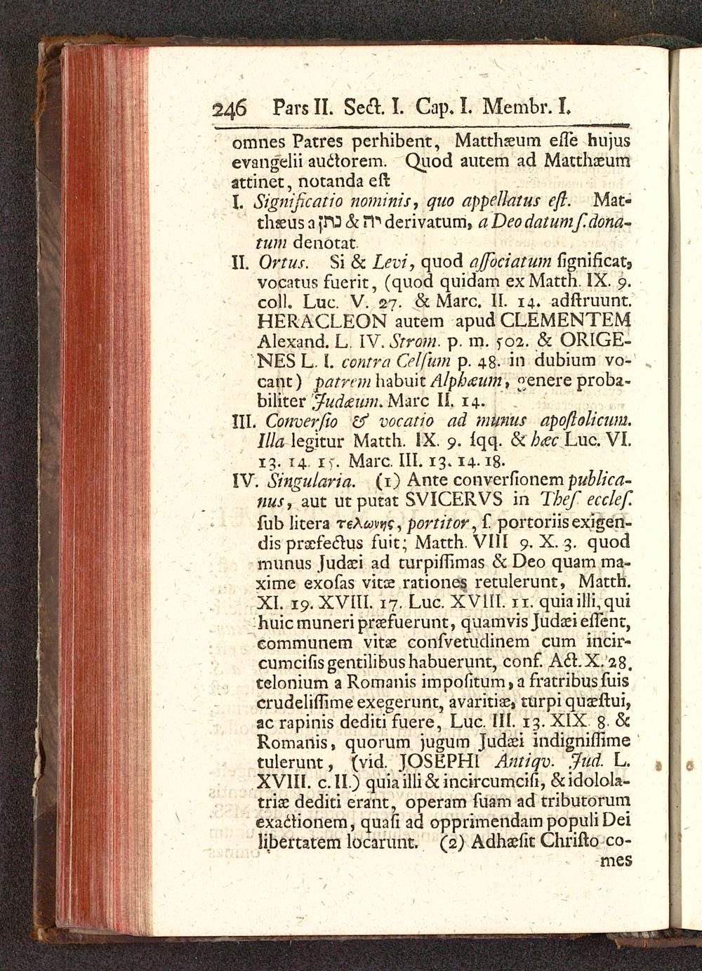 II. Ovtus. Si & Levi, quod ajfociatum fignificatjvocatus fuerit, (quod quidam exMatth. IX. 9.coll. Luc. V. 27. & Marc. II. 14. adftruunt.HERACLEON autem apud CLEMENTEMAlexand. L. IV. Strom. p. m. f 02. & ORIGE-NES L. I. contra Celfum p. 48- iil dubium vo-cant) patrtm habuit Alpbaum, ^enere proba-biliter "ifudzum. Marc II. 14.