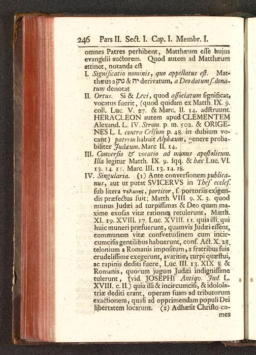 IV. Singularia. (1) Ante converfionem publica-nus } aut utputat SVICERVS in Thef ecclef.fub litera reXum , portitor, f portoriisexigen-dis praefedlus fuit; Matth. VIII 9. X. 3. quodmunus Judaei ad turpiflimas & Deo quam ma-xime exofas vitce rationes retulerunt, Matth.XI. 19. XVIII. 17. Luc. XVIII. 11. quiailli,quihuicmuneripraefuerunt, quamvis Judaei eflent,communem vitse confvetudinem cum incir-cumcifisgentilibushabuerunt, conf. AcLX.28.telonium a Romanis impofitum > a fratribus fuiscrudeliffime exegerunt, avaritiae, turpi quaeftui,ac rapinis dediti fuere, Luc. III. 13. XIX 8 &Romanis, quorum jugum Judaei indigniflimetulerunt, (vid. JOSEPHl Antiqv. .fud. L.XVIII. c. II.) quiailli&incircumcifi, &idolola-triae dediti erant, operam fuam ad tributorumexadtionem, quafi ad opprimendam populi Deilibertatem locarunt. (2) Adhaefit Chrifto co-