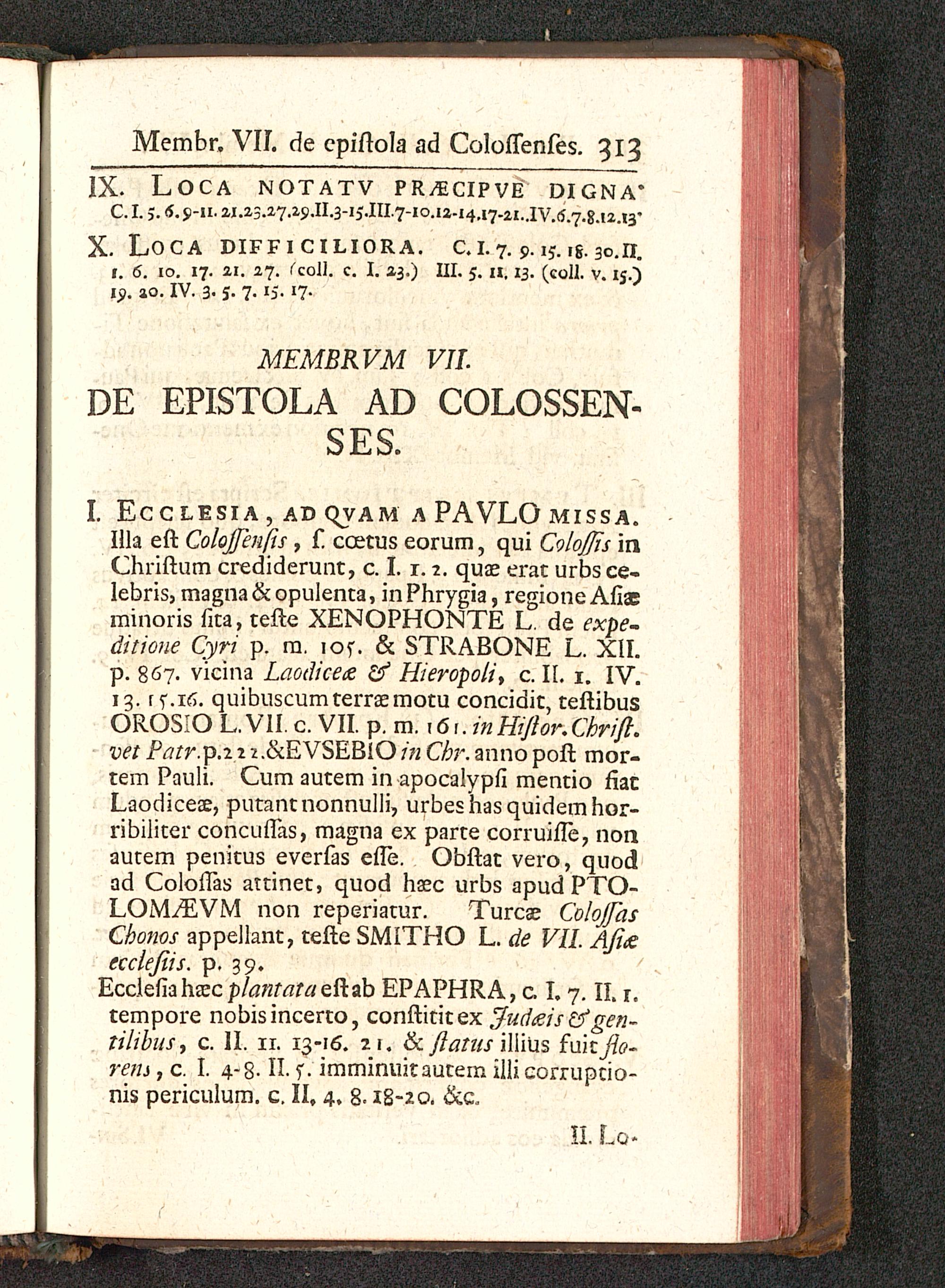 I. EcCLlSIA, AD QVAM A PAVLO MISSA.Hla eft Colojfenfis , f ccetus eorum, qui ColoJJis inChriftum crediderunt, c. I. 1.2. quae erat urbs ce-lebris, magna&opulenta, inPhrygia, regioneAfiaeminoris fita, tefte XENOPHONTE L. de expe-ditione Cyrt p. m. iof. & STRABONE L. XII.p. 867. vicina Laodice£ & Hieropoli, c. II. 1. IV.13. quibuscumterraemotu concidit, teftibusOROSIO L.VII. c. VII. p. m. i6i. inHtftor.Cbrift.vet Pfttr.p.i 2 2.&EVSEBIO in Cbr. anno poft mor-tem Pauli. Cum autem in apocalypfi mentio flatLaodiceae, putantnonnulli, urbeshasquidemhor-ribiliter concuflas, magna ex parte corruifle, nonautem peuitus everfas efle. Obftat vero, quodad CololTas attinet, quod haec urbs apud PTO-LOM^VM non reperiatur. Turcae ColojfasCbonos appellant, tefte SMITHO L. de VII. Afueecclejiis. p. 39.