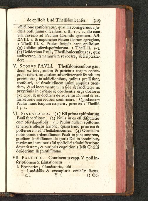 VI. Singvlaria. (1) EftprimaepiftolarumPauli fuperftitum. (2) Nulla irj ea eft difputatiocum pfevdapoftolis (0 Paulus nullam epiftolamteneriore affe&u fcripfit, quam hanc priorem &pofteriorem ad Theflalonicenfes. (4) Oboculosnobis ponit ardentiflimum Pauli in pios amorem,gaudium fancHfllmum de gratia Dei inhominibus,maximam in muneris fui apoftolici adminiftrationedexteritatem, & purioris cognitionis Jefu Chriftidefiderium flagrantiflimum.
