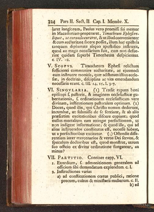 VI. Singvlaria. (i) Tradit typum bonicpifcopi f. paftoris, & imaginem eeclefiafticae gu-bernationis, f. ordinationem ecclefiafticam veredivinam, inftitutionem paftoralem optimam. (2)Docet» quod illis, qui Chrifto nomen dederunt,incumbat, us fubmifle de fe fenciant, & ab aliisprsefertim excitatioribus difcere cupiant; quodnuilus mortalium eam attingat perfectionem, utnon indigeat informatione; ckquod ille, qui adalios inftruendos conftitutus eft, necefle habeat,ut a perfectioribus excitetur. (,) Oftenditdiffe-rentiam inter mercenarios & veros Dei fervos, &fpeculum docloribus eft, quod monftrat, utrumfuo ofHcio ex divina ordinatione fungantur» anminus?
