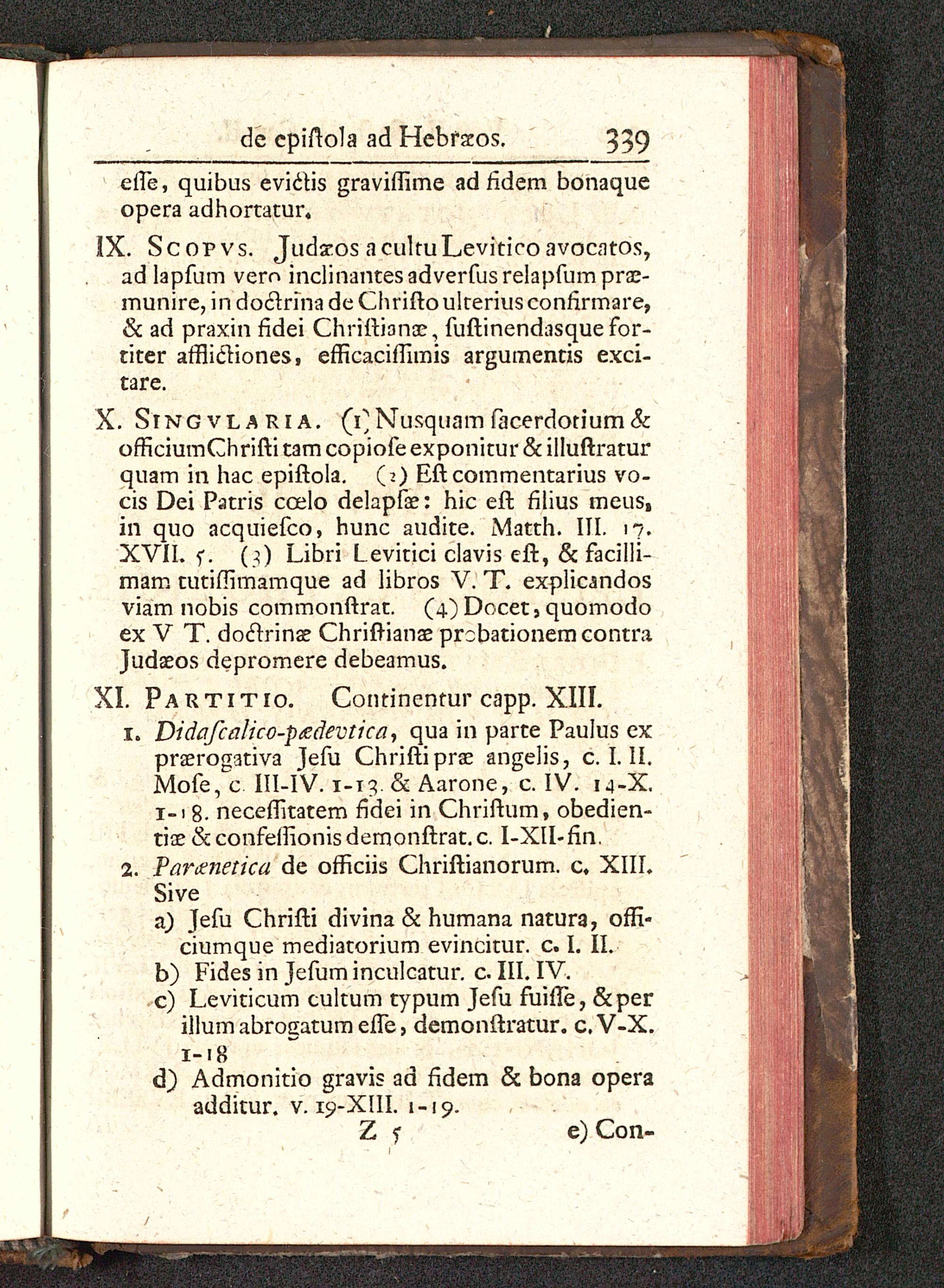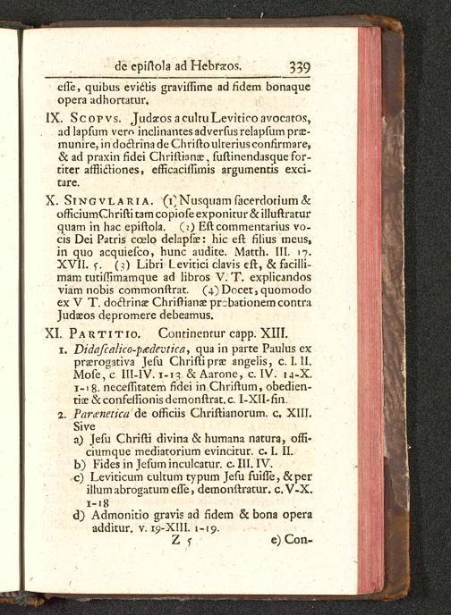 X. Singvlaria. (i^Nusquam facerdotium ScofficiumChrifti tam copiofe exponitur & illuftraturquam in hac epiftola. (2) Eftcommentarius vo-cis Dei Patris ccelo delapfa?: hic eft filius meus,in quo acquiefco, hunc audite. Matth. III. 17.XVII. f. (3) Libri Levitici clavis eft, & facilli-mam tutiffimamque ad libros V. T. explicandosviam nobis commonftrat. (4.) Docet, quomodoex V T. doclrinae Chriftianae probationemcontraJudaeos depromere debeamus.