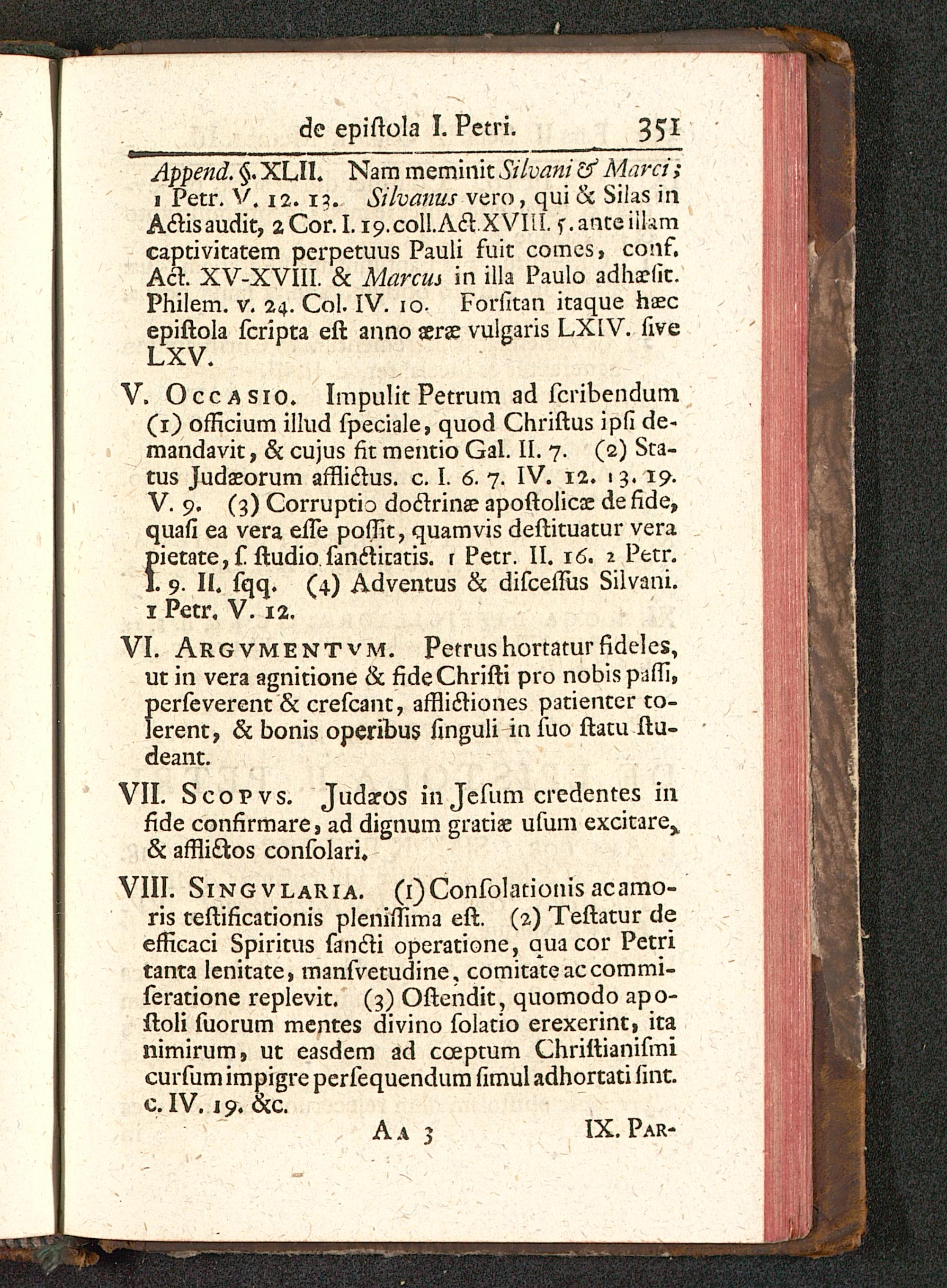 VIII. Singvlaria. (i)Confolationis acamo-ris teftificationis pleniffima eft. (2) Teftatur deefficaci Spiritus fancli operatione, qua cor Petritanta lenitate, manfvetudine, comitateaccommi-feratione replevit. (3) Oftendit, quomodo apo-ftoli fuorum mentes divino folatio erexerint, itanimirum, ut easdem ad cceptum Chriftianifmicurfum impigre perfequendum fimul adhortati lint.c. IV. 19. &c.