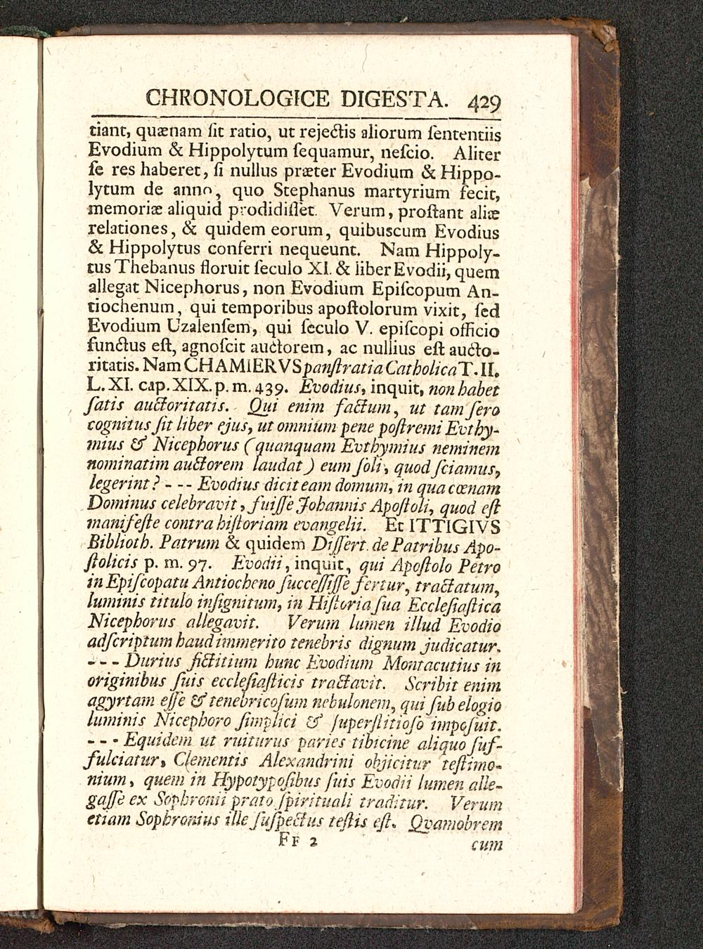 originibus fuis ecclejiajticis traciavit. Scribit enimagyrtam ejje & tenebncojum nebulonem, quifubelogioluminis Nicepboro Jimplici £3? juperjiitiojb impojuit.- - - Equidem ut ruiturus paries tibicine aliquo Juf-fulciatur* Ciementis Alcxandrini objicitur ieftimo*nium, quemin Hypotypofibus fuis Evodii lumen alle-gajfeex Sopbronii prato jpirituali tradizur. Verumetiam Sophronius ilieJufpecius teftis efi. Qvamobrem