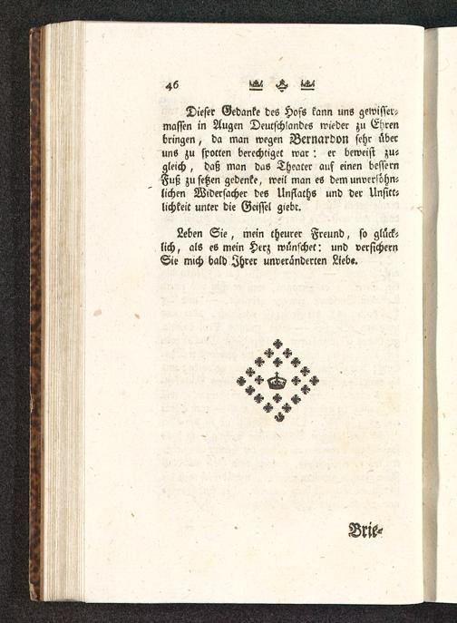 Leben Sie, mein theurer Freund, so glück-lich, als ee mein Herz wünschet: und versichernSie mich bald Ihrer unveränderten Lieb«.