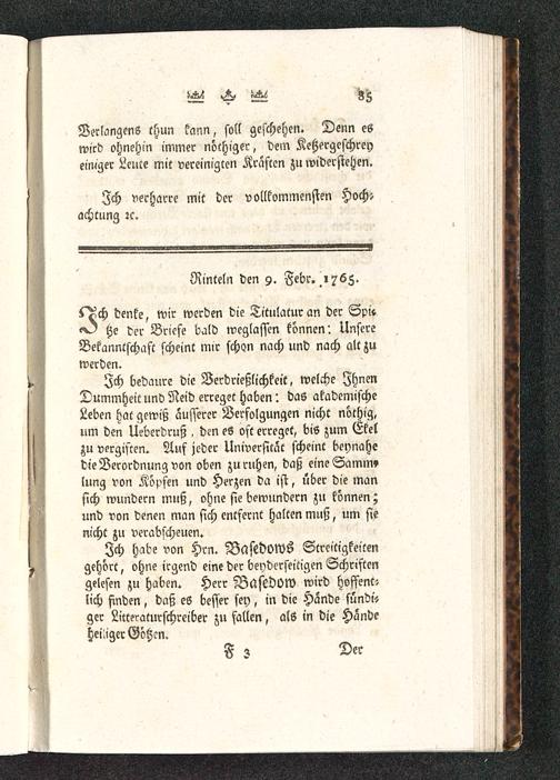 Ich habe von Hrn. Basedows Streitigkeitengehört, ohne irgend eine der beyderseitigen Schriftengelesen zu haben. Herr BüsedDW wird hoffent-lich finden, daß es besser sey, in die Hände sündi-ger Litteraturschrciber zu fallen, als in die Händehei.iger Götzen.