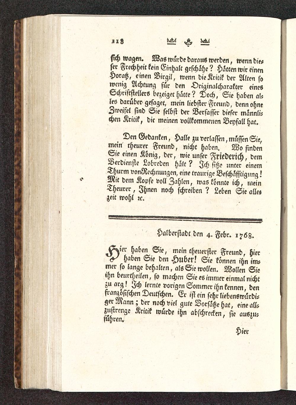 Den Gedanken, Halle zu verlassen, müssen Sie,mein theurer Freund, nicht haben. Wo findenSie einen König, der, wie unser Anedench, demVerdienste Lobreden halt? Ich sihe unter einemThurm vonRechnungen, eine traurige Beschäftigung I^ Mit dem Kopfe voll Zahlen, was könnte ich, meinTheurer, Ihnen noch schreiben ? Leben Sie alle»zeit wohl ic.