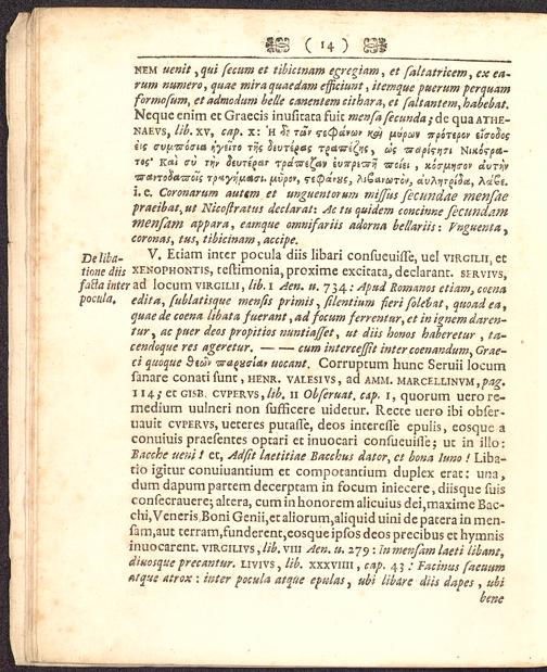 tiottediis xenophontis, ceftimonia^proxime excicaca, declaranc. servivs,fad.a inter ad locum virgilii , lib. i Aen. tt. 734; Apud Romanos etiam, coenapocula, editet, fublatisque menfts primis , ftlentium fieri folebat, quoad ea,ijuae de coena libata fuerant, adfocum ferrentur, et in ignem daren-tur y ac puer deos propitios nuntiaffet, tit diis honos haberetur , ta-