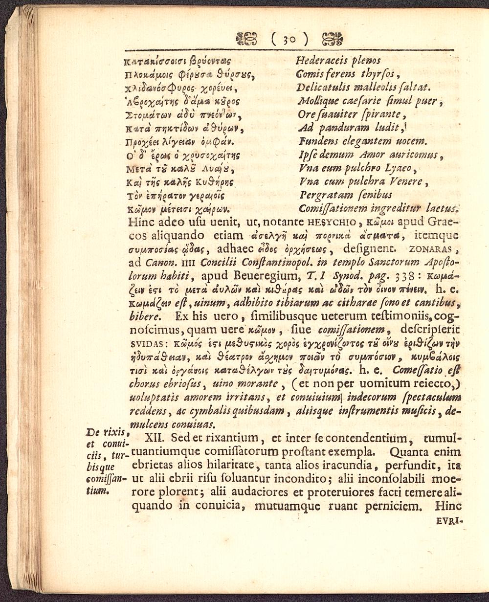 Hinc adeo ufu uenic, ur, notance hesychio , tiSput apud Grae-cos aliquando etiam daAyrj Kaj iropuid «<T(tar*, icemqUeo~v[A,Troata.<; adas , adhaec &hg bpxqo~tu>s , defignent. zonaras ,ad Canon. im Concilii Conflantinopol. in templo Sanctorum Apojio-lorumhabiti, apud Beueregium, T, I Synod. pag. 338: KWjwct-^fefli e<r» to [HToi dvhui K<ti Ki&apas tcati uotiip rbv otvov -r*mv, h. e.Kuf*d£ew e(i ,uinum, adhibito tibiarum ac citharae fonoet cantibus tbibere. Ex his uero , fimilibusque ueterum tcflimoniis,cog-nofcimus, quam uere Kwy.n, fiue comijjationem, defcriplericsvidas : Kodixos e<n {it$v?tKcs %opos tyxeovifynos t£ oiva iP&iZ/uv tjji>ydvTrdSetay, Keii QiaTpov ae/t-pcv Wfltav to ffv/Airocrtov , Jtti/WoaAoJStjo") xstj bfydvcts KetTaSzhyav txs dajrvptorets. h. C. Comeffatio eftchorus ebriofus , «/«0 morante , ( et non per uomitum reiecco,)uoluptatis amorem irritans, et conuiuium} indecorum fpectaculumreddens , ctc cymbalis quibusdam , altisaue inflrumentis mujicis , de-. , mulcens conuiuas.