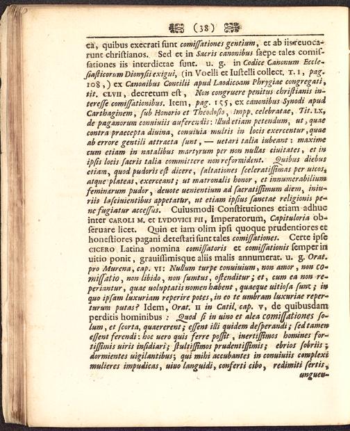 ca, quibus execrati func comijfationes gentium, ec ab iistreuoca-runc chriftianos. Sed ec in Sacris canonibus faepe cales comif-faciones iis incerdiccae func. u. g. in Codice Canonum Eccle-JiafHcorumDionyfiiexigui, (in Voclli ecluftelli collecc. T. i, pag.108 ,) ex Canonibus Comilii apud Laodiccam 1'hrygiae congregati ytit. clvii , decrecum eft, Non congruere penitt/s cbriflianis in-terejfe comiffaticnibus. Icem, pag. i $ j, ex canonibus Synodi apudCarthaginem , fub Honorio et Tbeoclofto, Impp. celebratae, Tit.LX,de paganorum conuiuiis aufercndis: llludetiam petendum t ut yqttxecontra praecepta diuina, conmuia multis in locis exercentur ,quaeab errore gentili attracta funt, — uetari talia iubeant : maximecum etiam in natalibus martyrum per non nullas siuitates, et it»ipfis locis facris talia committere nonrefotmidmt. jQuibus diebusctiam, quod pudoris eft dicere, faltationes fceleratifpmas per uicos tatque plateas , exerceant; ut matronxlis honor , et innumerabiliumfeminarum pudor , deuote uenientiurn ad facratiffimum diem x iniu->riis lafciuientibus appetatUr, ut etiam ipfius fanctae religionis pc*nc fugiatur acceffus. Cuiusmodi Confticuciones eciam adhucincer caroli m. ec lvdovici pii, Imperatorum, Capituloria ob-feruare licec. Quin ec iam olim ipfi quoque prudenciores echoneftiores pagani deceftacifunccales comijfationes. Cerce ipfccicero Lacina nomina comiffatoris cc comiffationis fempcrinuicio ponic, grauiftimisque aliis malis annumerac. u. g. Orat.pro Murcna, cap. vi: Nullum turpe eonuiuium, non amor , non co*mi^atio , non libido, non fumtus, ojlendituret, cum ea non re-periantur, quae uoluptatis nomen habent, quaeque uitiofa funx.; mquo ipfam luxuriam reperire potes, in eo te umbram luxuriae reper-turum putas? Idem, Orat. 11 in Catil, cap. v, de quibusdamperdicis hominibus ; Jguod (i in uino et alea comiffationes fo-lum, et fcorta, quaererent; effent illi quidem defperandi; fedtametteffent ferendi: hoc uero quis ferre pojfit , inertijjtmos homines for~tifftmis uiris infidiari; JlultiJJimos prudentiffimis ; ehrios fobriis ;dormientes uigilantibus; qui mihi accubantes in conuiuiis ctmpleximulieres impudicas, uitto languidi, conferti cibo t redimiti fertis^