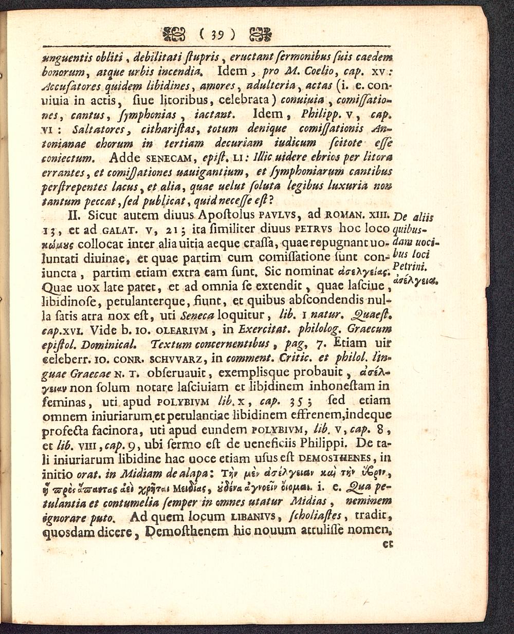 II. Sicuc autem diuus Apoftolus pavlvs, ad roman. xiii. n e a ijj sij, cc ad galat. v, 21; ita fimilicer diuus petrvs hoc loco quibus-Kuans collocac incer aliauicia aeque crafla, quaerepugnancuo- daw «oci-luncati diuinae, et quae parcim cum comiflacione lunc con-^" {ociiuncca , partim etiam extra eam func, Sic nominac ds-i\ytl*s'. P , e l r *"*'Quae uox lace pacec, ec ad omnia fe excendic , quae lafciue ^ K 7 il< *'hbidinofe, peculancerque, fiimc, ec quibus abfcondendis nul-la fatis atra nox eft, uti ^«^«loquitur, lib. i natur. J^uaeft,eap.xvi. Vide b. 10. olearivm , in Bxercitat. philolog. Graecumepiftol. Dominical. Textum concementtbus , pag, 7. Etiam uireeleberr. 10. conr. schvvarz, in comment. Critic. et philol. iin-guae Craecae n. t. obferuauic, exemplisque probauic, «VeA-ytm non folum nocare lafciuiam ec libidinem inhoneftam infeminas, uci apud polybivm iib. x , cap. 5 5 3 fed eciamomnem iniuriarum.ee peculanciae libidinem efFrenem,indequeprofeda facinora, uti apud eundem polybivm, lib. v,cap. 8 ,et lib. vm,cap.Q, ubi fermo efl de uenefkiis Philippi. De ta-li iniuriarum libidine hac uoce etiam ufus eft demosthenes , inanicio orat. in Midiam dealapa: lr t » /ue> d<ji>yuav xai r«» vGgu,y -arf e\ aTSTAtras <tt) xftt^i MeiJ/tef, 9#fM a.yvtiiv cioftcn. i. e. Jjtua pe-tulantia et contumelia femper in amnes utatur Midias , neminemignorare puto. Adquemlocum libanivs, fcholiaftes , tradic,quosdam dicere, Demofthenem hie nouum attulifle nomen,