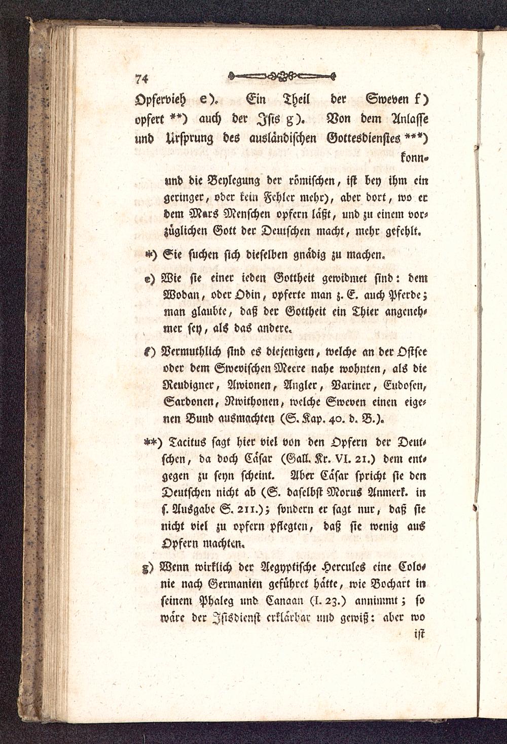 Opfervieh e). Ein Theil der Sweven 5)opfert **) auch der Isis g). Von dem Anlasseund Ursprung des ausländischen Gottesdienstes ***)