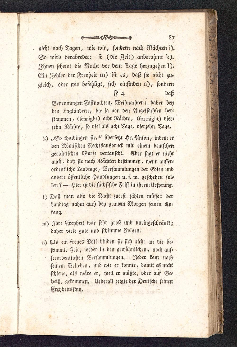 fc) „So thaidingen sie," übersetzt Hr. Anton, indem erden Nöinischcn Rechtsausdruck mit einem deutschengerichtlichen Worte vertauscht. Aber sagt er nichtauch, daß sie nach Nachten bestimmen, wenn ausser--ordentliche Landtage, Versammlungen der Edlen undandere öffentliche Handlungen u. s. w. geschehen sol»lcn ? — Hier ist die sachsische Frist in ihrem Ursprung.
