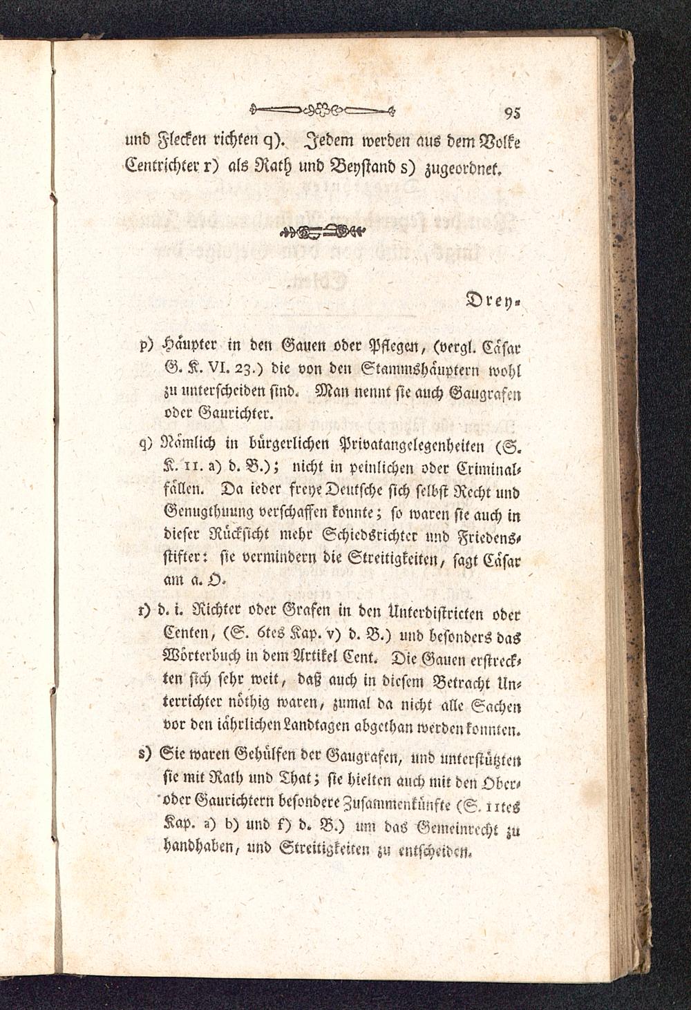 p) Haupter in den Gauen oder Pflegen, (vergl. CäsarG. K. VI. 2Z.) die von den Staminshauptern wohlzu unterscheiden sind. Man nennt sie auch Gaugraftnoder Gaurichter.