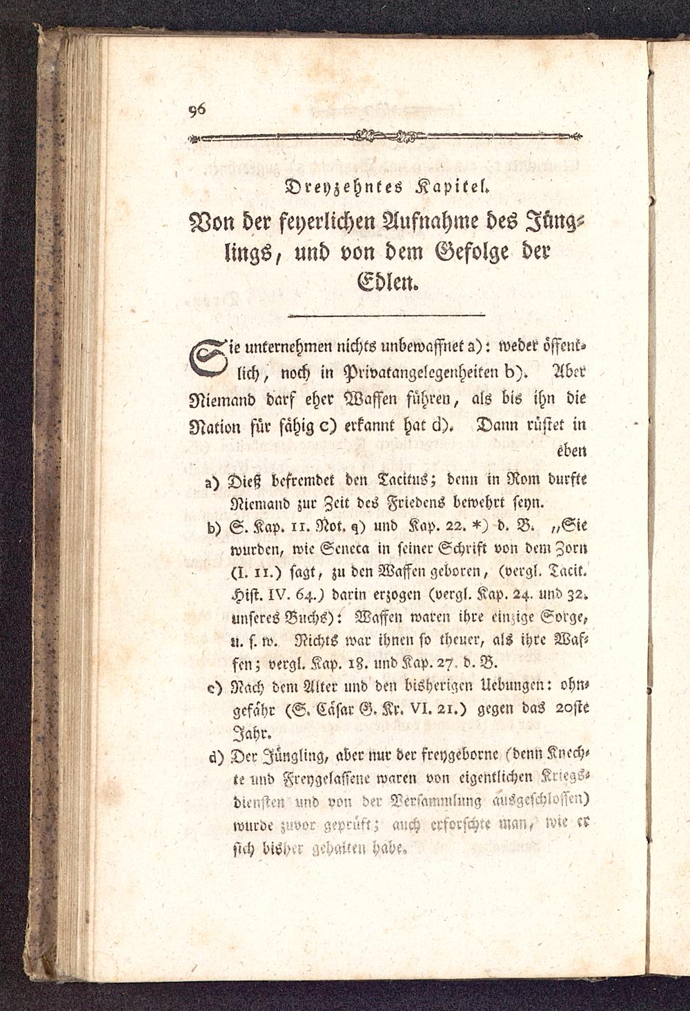 6) Der Jüngling, aber nur der freygeborne sdenn Knech«te und Freygelassene waren von eigentlichen Kriegs»dienften und von der Versammlung ausgeschlossen)wurde zuvor geprüft; auch erforschte man, wie ersich bisycr gehalten habe.