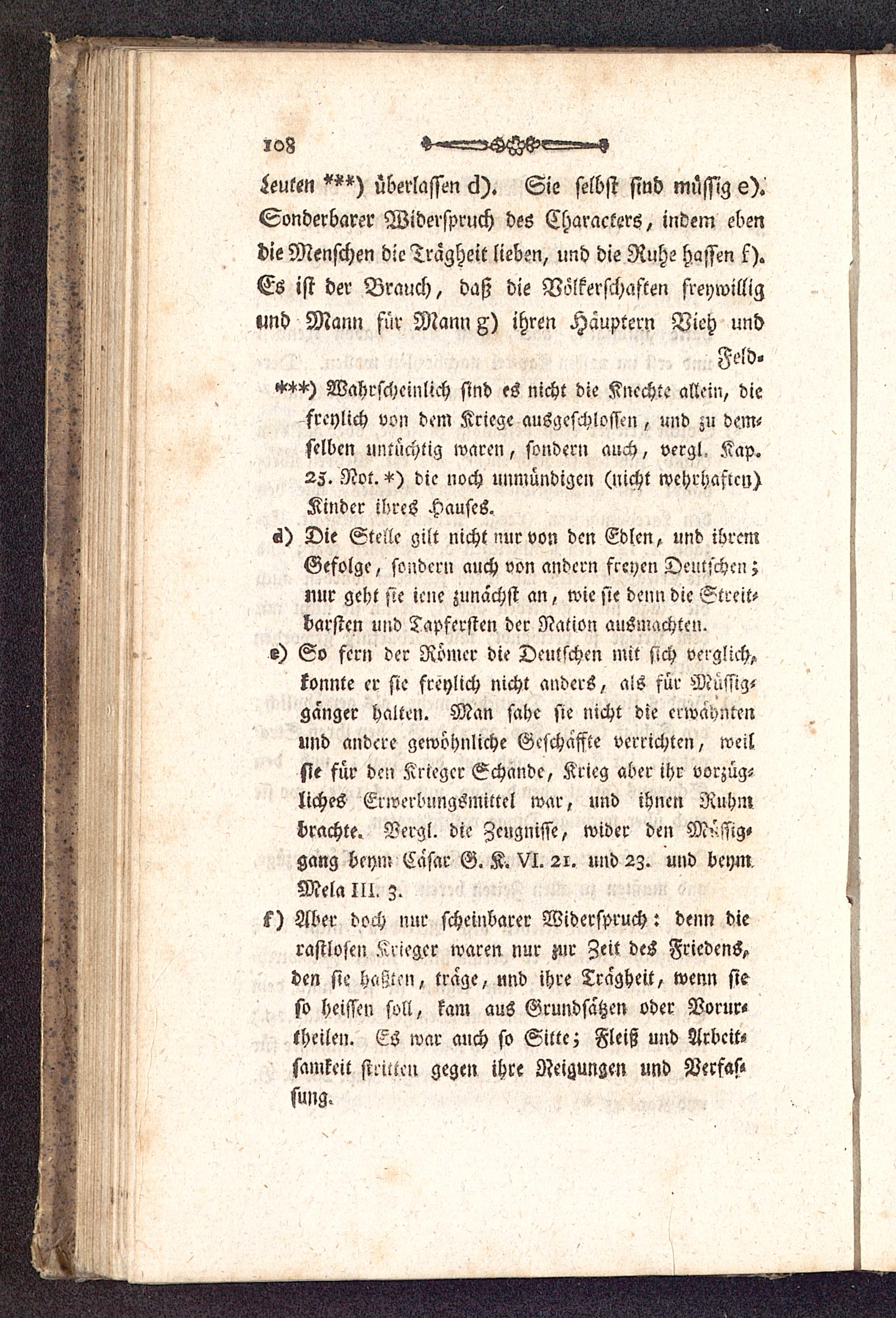 ieutm ***) überlassen d). Sie selbst sind müssig e).Sonderbarer Widerspruch des Characters, indem ebendie Menschen die Trägheit lieben, und die Ruhe hassen 5).Eö ist der Brauch, daß die Völkerschaften sreywilligund Mann für Mann g) ihren Häuptern Vieh und