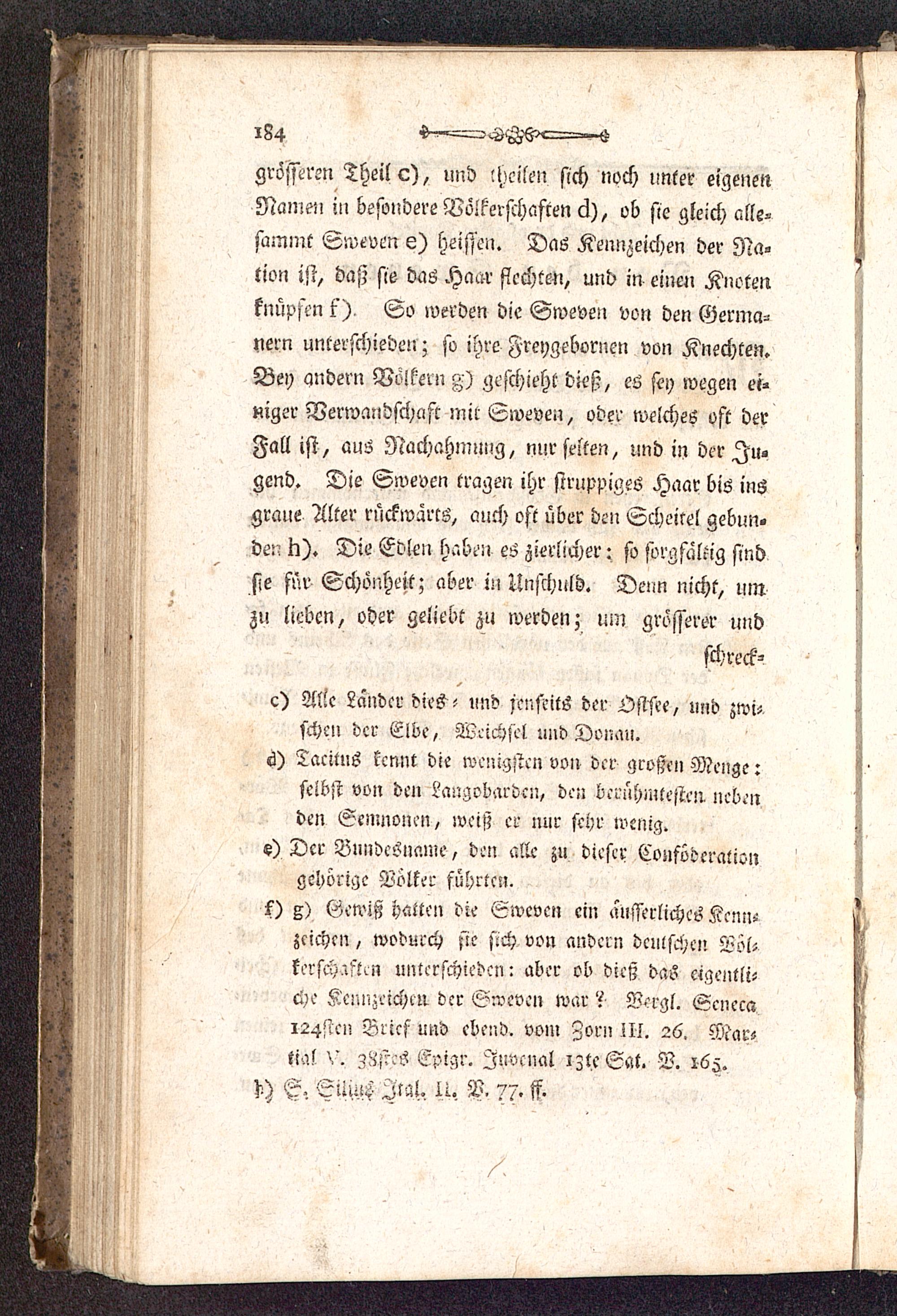 gehörige Völker führten,f ) g) Gewiß hatten die Sweven ein ausserliches Kenn-Zeichen, wodurch sie sich von andern deutschen Löl-kersch^Aen unterschieden: aber ob dieß das eigentli-che Kennzeichen, der Sweven war ?• Bergt. Scnecai24sten Brief und cbend. vom Zorn III. 26. Mac-tial X'. zMeS Epigr. Iuvcnal izte Sat. V. 165.