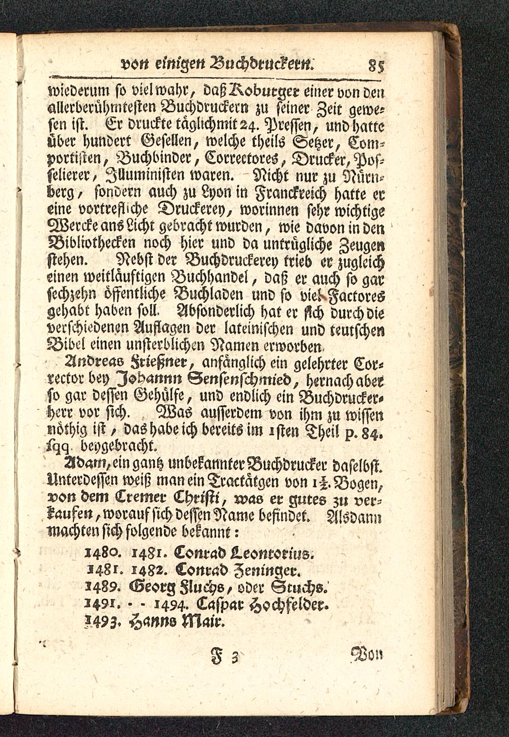 Adam, ein gantz unbekannter Buchdrucker daselbst.Unterdessen weiß man ein Tractatgen von ij. Bogen,Von dem Cremer Christi, was er gutes zu ver-Kaufen, wsraufsich dessen Name befindet. Alsdannmachten sich folgende bekannt :