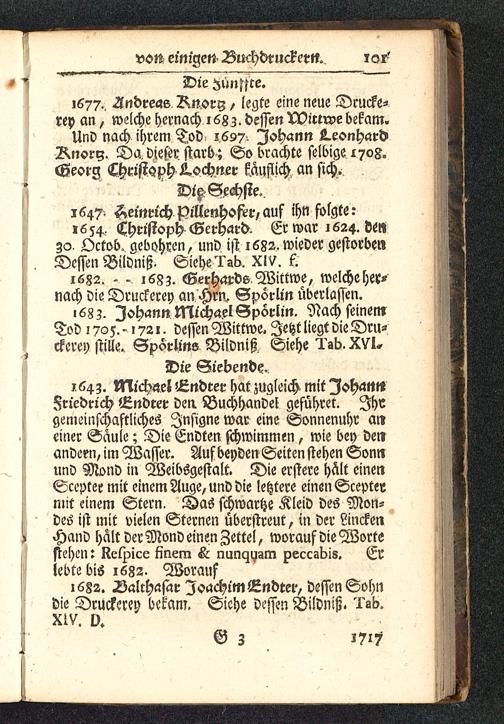 1683. Johann Michael Spörlin. Nach seinemTod 1705.-1721. dessen Wittwe. Jetzt liegt die Dru-ckerey stille. Spörlins Bilvniß. Siehe Tab. XVI*