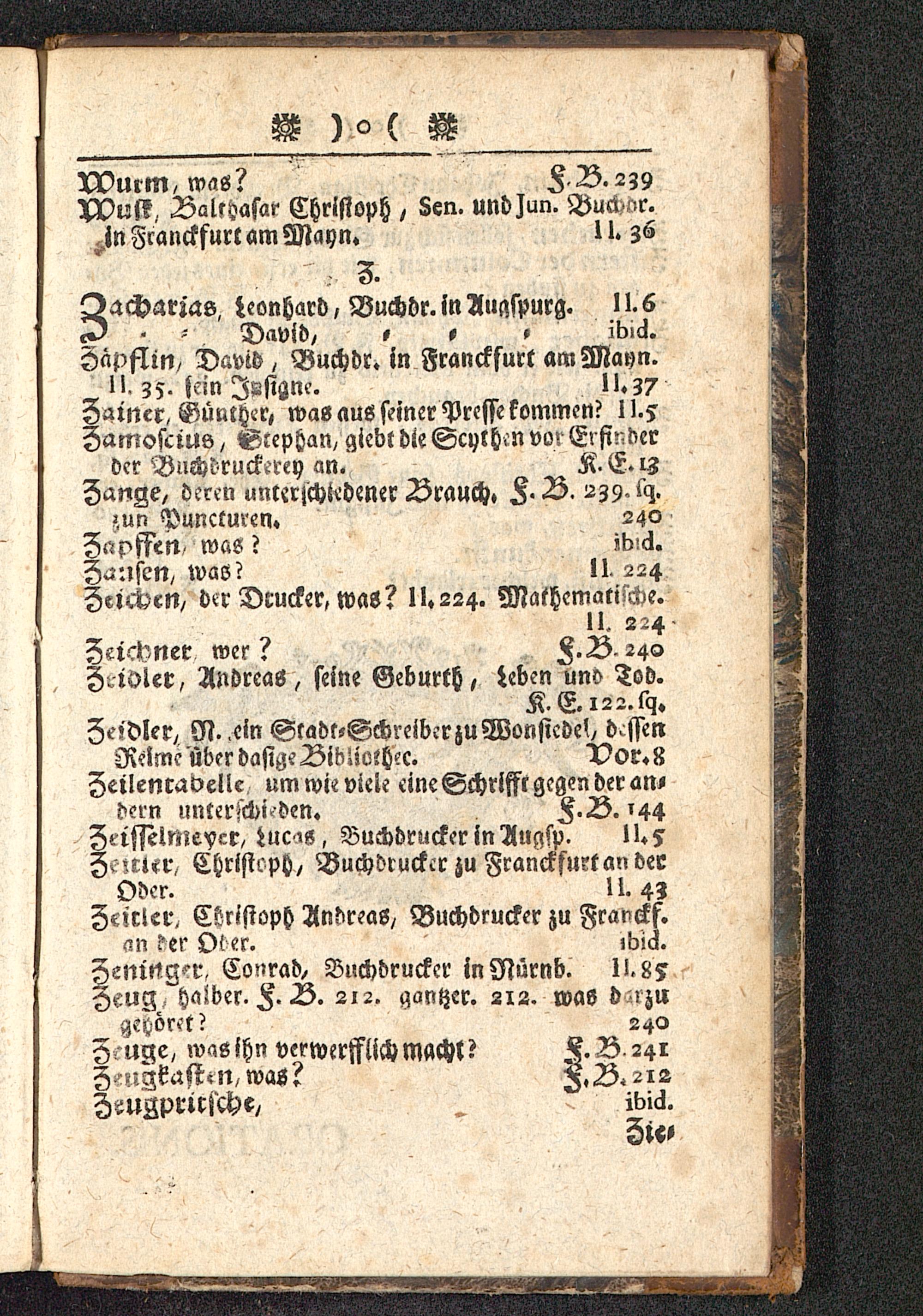 Zeissetmeycr, Luc-,«, Buchdrucker in Augsp. I I. 5Z. rna-, Christoph, Buchdrucker zu Franckfurt an der