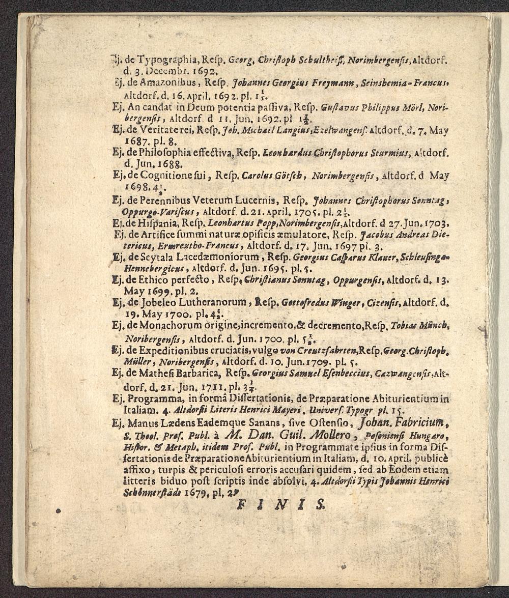 Oppurgo-Varifcus, Altdorf. d.2i. April. 170^. pl. 2?.Ej.dc Hifpania, Ref\\Leonbartus PoppNorimbtrgenfis.khAoxf. d 27. Jun. f 703«Eji dc Artifice fummi naturs opificis amulatore, Refp. Jacebus Andrcas Die-