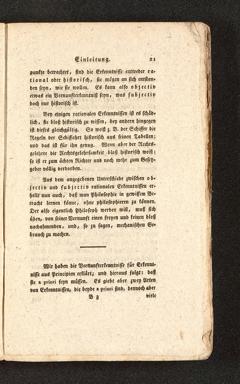 Bey einigen rationalen Erkenntnissen ist es schäd-lich, sie bloß historisch zu wissen, bey andern hingegenist dieses gleichgültig. So weiß z. B. der Schiffer dieRegeln der Schiffahrt historisch aus seinen Tabellen;und das jst für ihn genug. Wenn aber der Rechts-gelehrte die Rcchtsgelehrsamkeit bloß historisch weiß:so ist er zum achten Richter und noch mehr zum Gesetz,geber völlig verdorben.