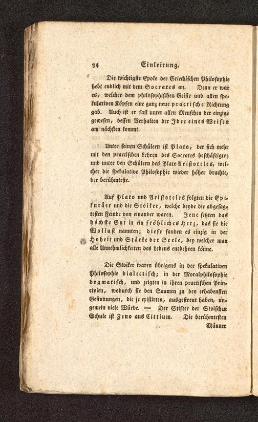 Unter seinen Schülern ist Plato , der sich mehrmit den practischen Lehren des Socrates beschäftigte;und unter den Schülern des PlatoAristoteles, wel-cher die spekulative Philosophie wieder hoher brachte/der berühmteste.
