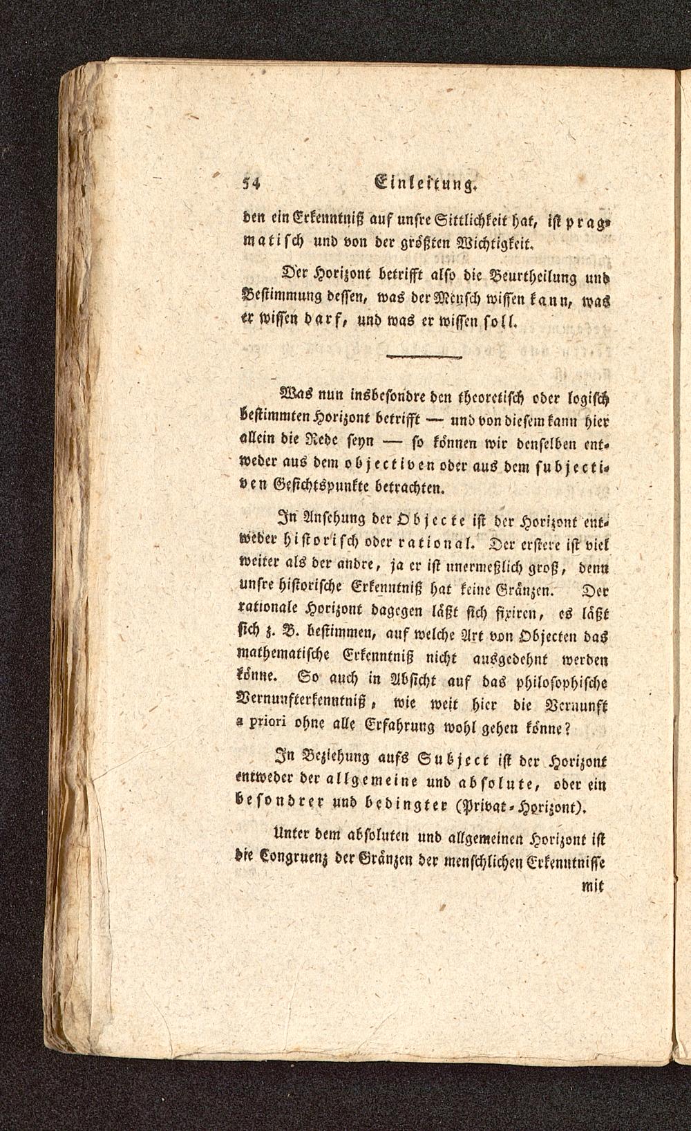 In Beziehung aufs Subject ist der Horizontentweder der allgemeine und absolute, oder einbesondrer und bedingter (Privat-Horizont).
