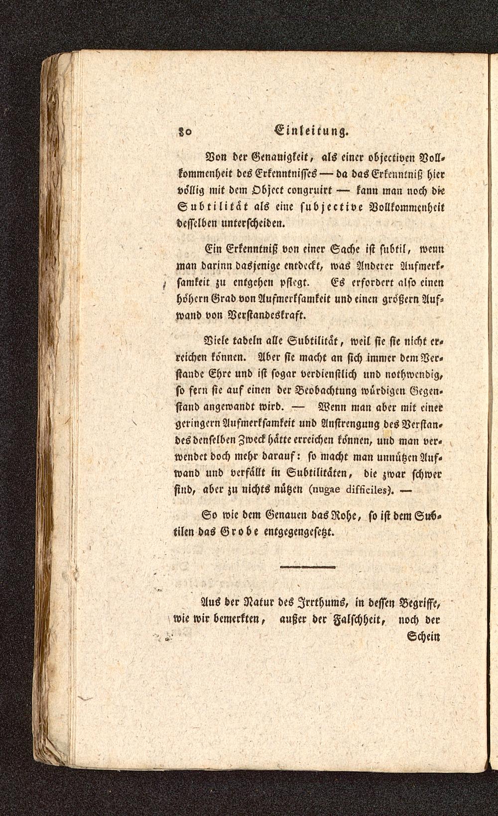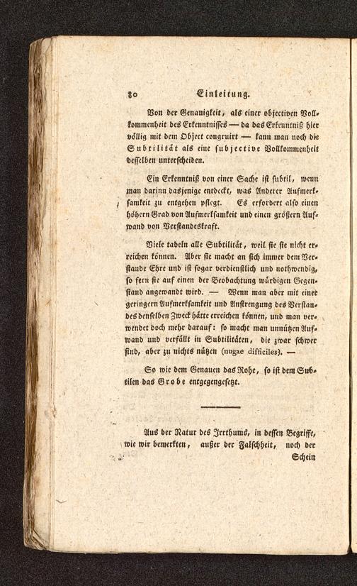 Von der Genauigkeit, als einer objectiven Voll-kommenheit des Erkenntnisses — da das Erkenntniß hiervöllig mit dem Object congruirt — kann man noch di-eSubtilitat als eine subjektive Vollkommenheitdesselben unterscheiden.