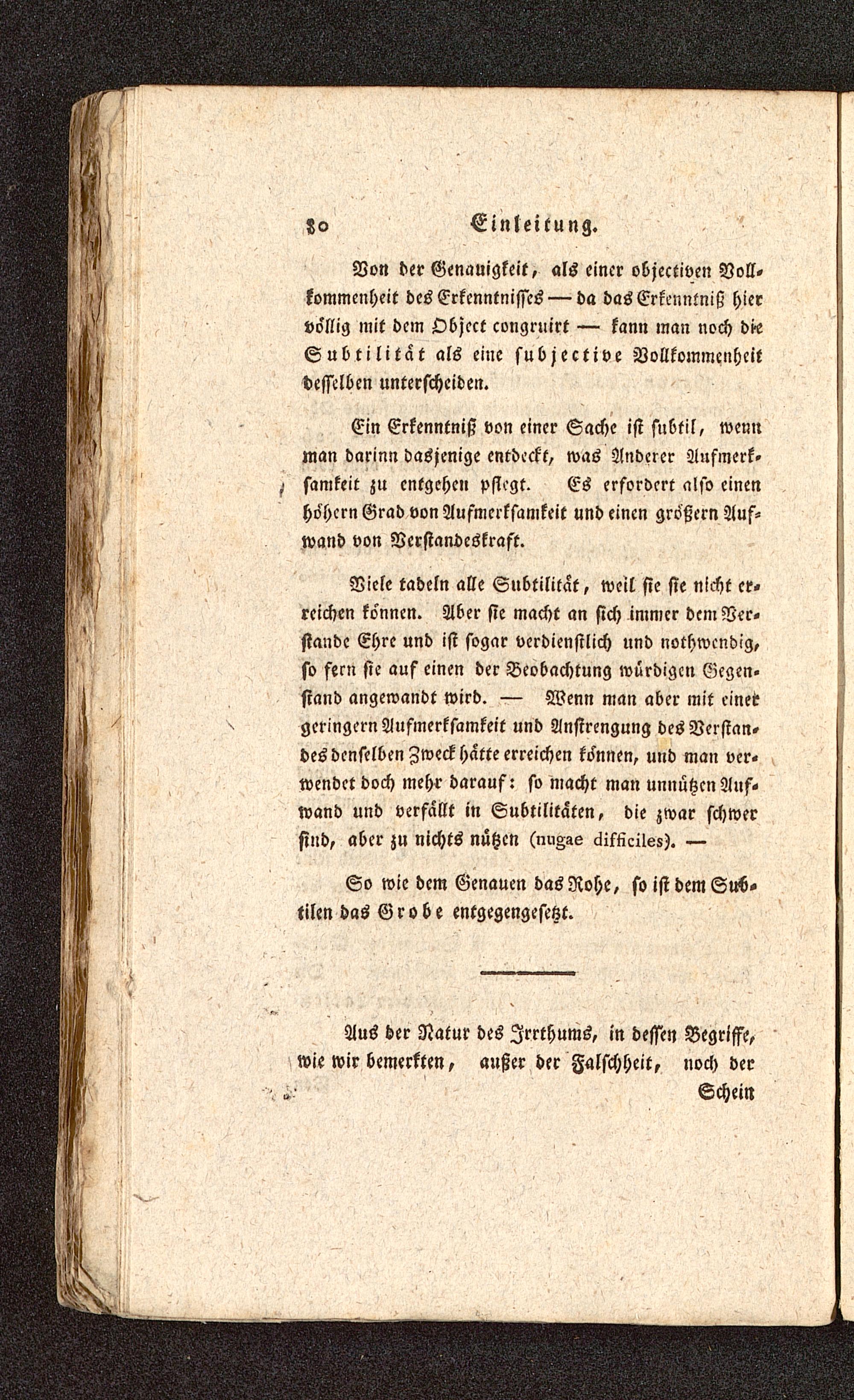 Ein Erkenntniß von einer Sache ist subtil, wennman darinn dasjenige entdeckt, was Anderer Aufmerk-samkeit zu entgehen pflegt. Es erfordert also einenhohcrn Grad von Aufmerksamkeit und einen größcrn Auf-wand von Verstandcskrast.