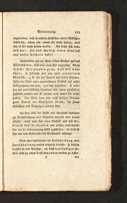 So fern aber der Wille den Verstand entwederzur Nachforschung einer Wahrheit antreibt oder davonabhält, muß man ihm einen Einfluß auf den Ge-brauch des Verstandes und mithin auch mittel-bar auf die Ueberzeugung selbst zu^dstchen, da diese sosehr von dem Gebrauche des Verstandes abhangt.