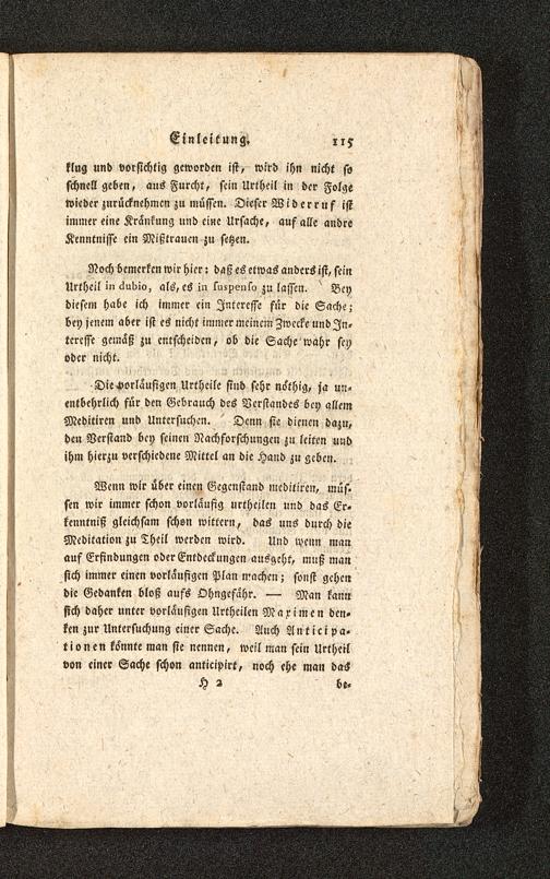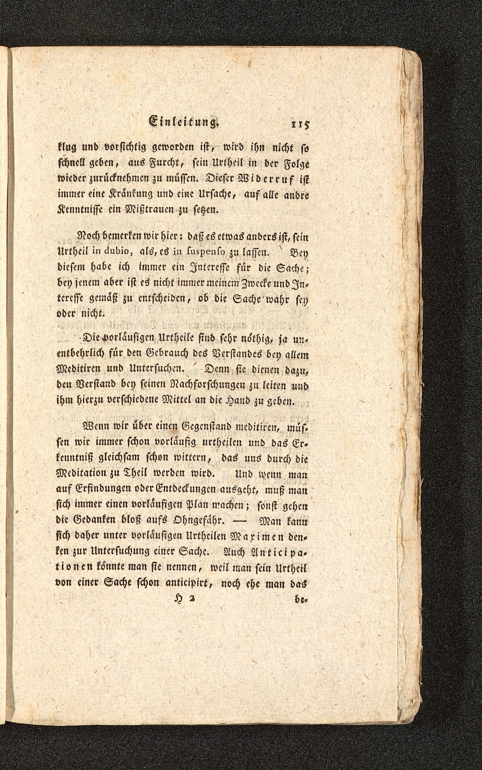 Wenn wir über einen Gegenstand mcditiren, müs.sen wir immer schon vorläufig urtheilen und das Er-kcnntniß gleichsam schon wittern, das uns durch dieMeditation zu Theil werden wird. Und wenn manauf Erfindungen oder Entdeckungen ausgeht, muß mansich immer einen vorläufigen Plan machen; fönst gehendie Gedanken bloß aufs Ohngefähr. — Man kannsich daher unter vorläufigen Urtheilen Maximen den-ken zur Untersuchung einer Sache. Auch Anticiva.tionen konnte man sie nennen, weil man sein Urtheilvon einer Sache schon anticipirt, noch ehe man da-Z