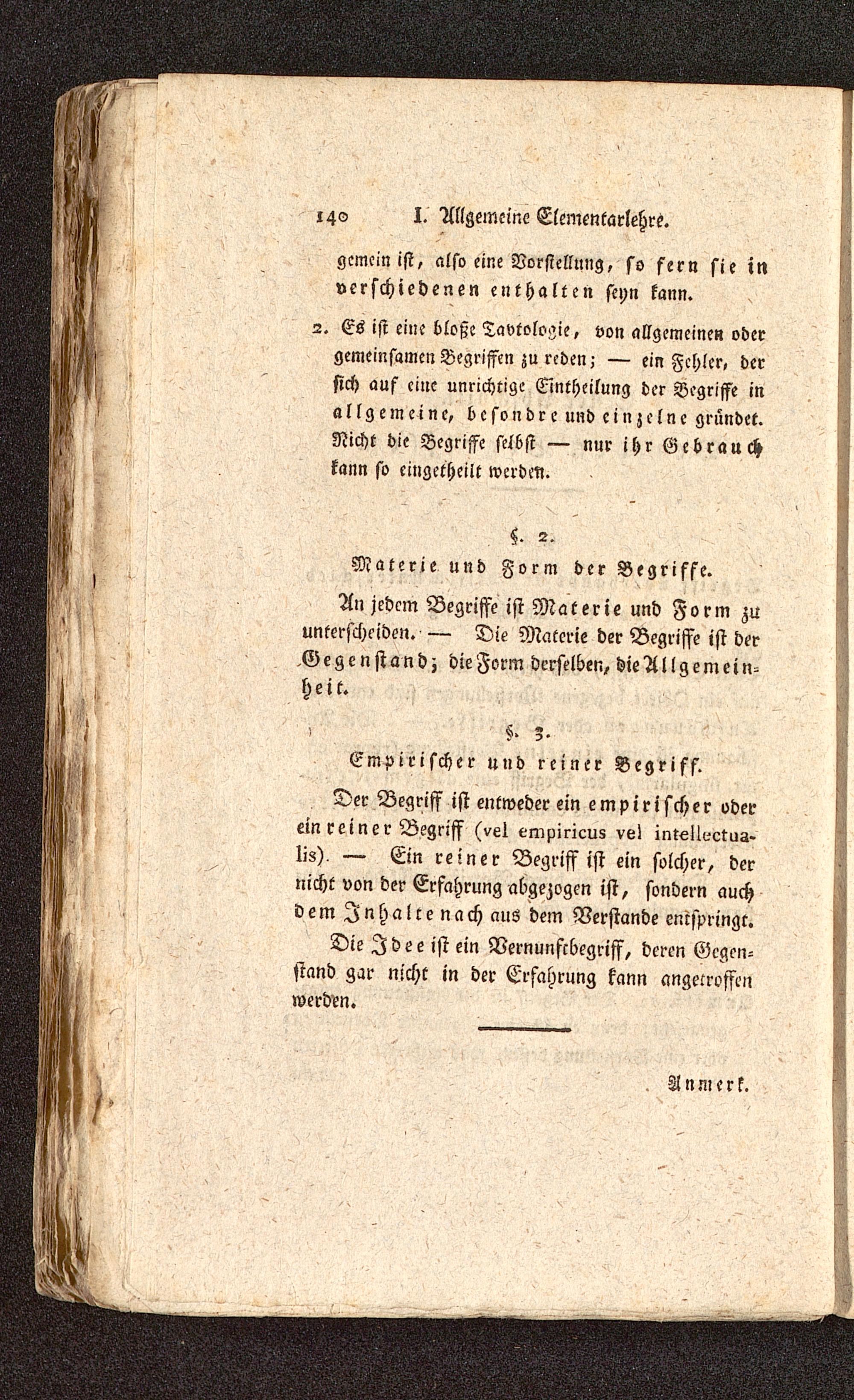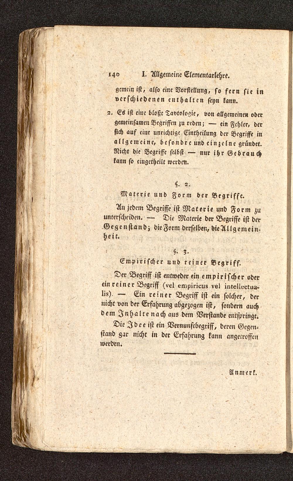 An jedem Begriffe ist Materie und Form zuunterscheiden. — Die Materie der Begriffe ist der.Gegenstand; die Form derselben, dieAllgemein-heit.