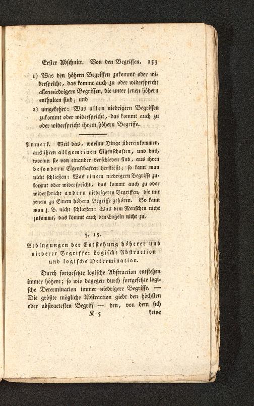 Bedingungen der Entstehung höherer undniederer Begriffe: Logische Absiractionund logische Dctermination.