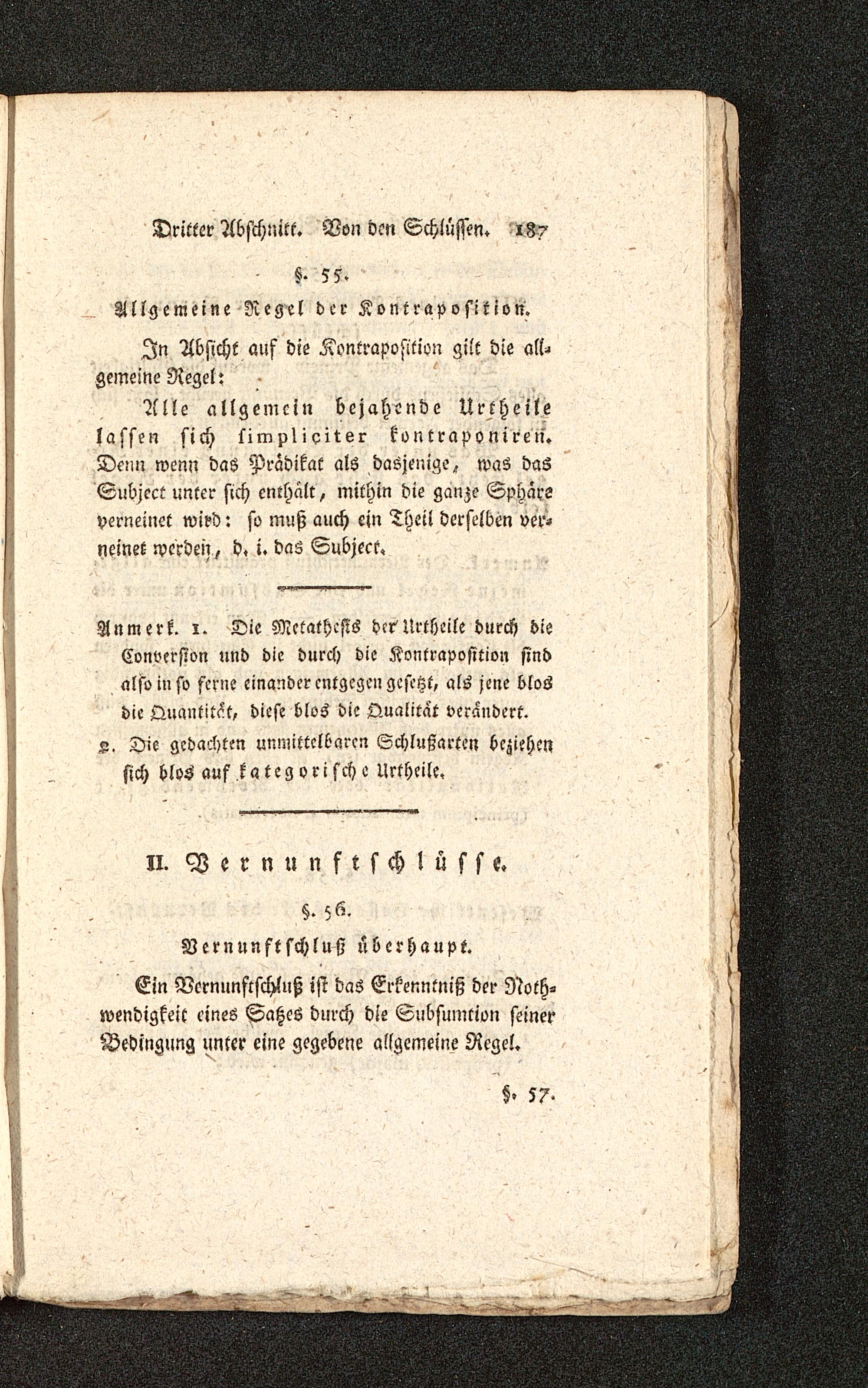 Anmerk. Die Mctathcsts der Urtheile durch dieConversion und die durch die Kontraposition sindalso in so ferne einander entgegen gesetzt, als jene blosdie Quantität, diese blos die Qualität verändert.