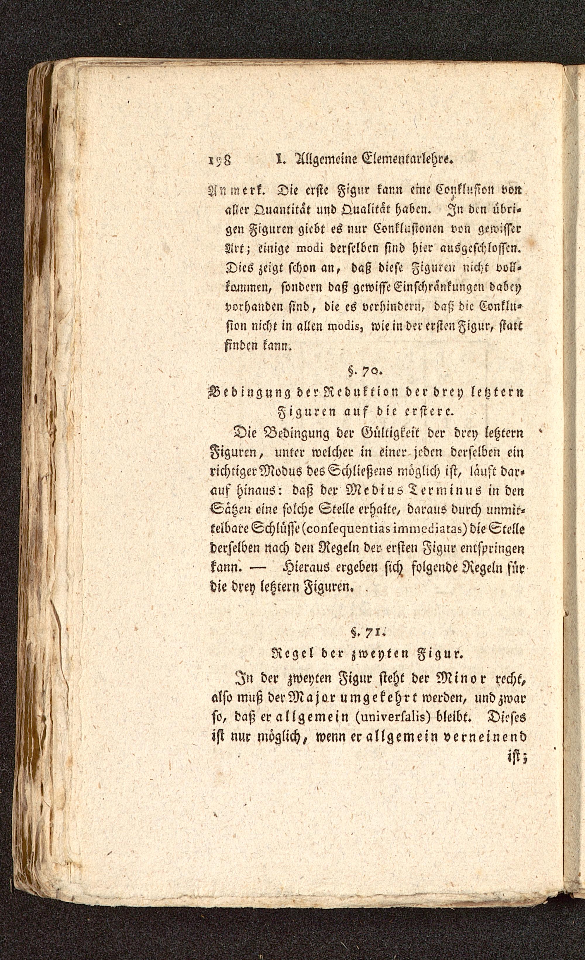 An merk. Die erste Figur kann eine Conkluflon vonaller Quantität und Qualität haben. In dcn übri-gen Figuren giebt es nur Conklusioncn von gewisserArt; einige moäi derselben sind hier ausgeschlossen.Dies zeigt schon an, daß diese Figuren nicht voll-kämmen, sondern daß gewisse Einschränkungen dabeyvorhanden sind, die es verhindern, dasi die Conkln-sion nicht in allen mo6is, wie in dererstenFigur, stattfinden kann.