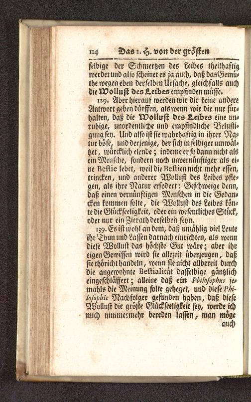 lzy. Es ist wohl an deiri, daß unzahlig viel Leuteihr Tbun und Lassen darnach einrichten, als wenndiese Wollust das höchste Guc wäre; aber ihreigen Gewissen wird sie allezeit überzeugen, daßsie thöricht handeln, wenn sie nicht allbereit durchdie angewohnte Kettialirät dasselbige gantzlicheingeschlafferr; alleine daß em ^/7o/ö^/ je,mahls die Meinung solte geheget, und diese-p^-/o/ö/M- Nachfolger gefunden habet», daß dieseWollust die grvste Glückseeligkeit sey, werde ichmich nimme'.mchr bereden lassen, man möge