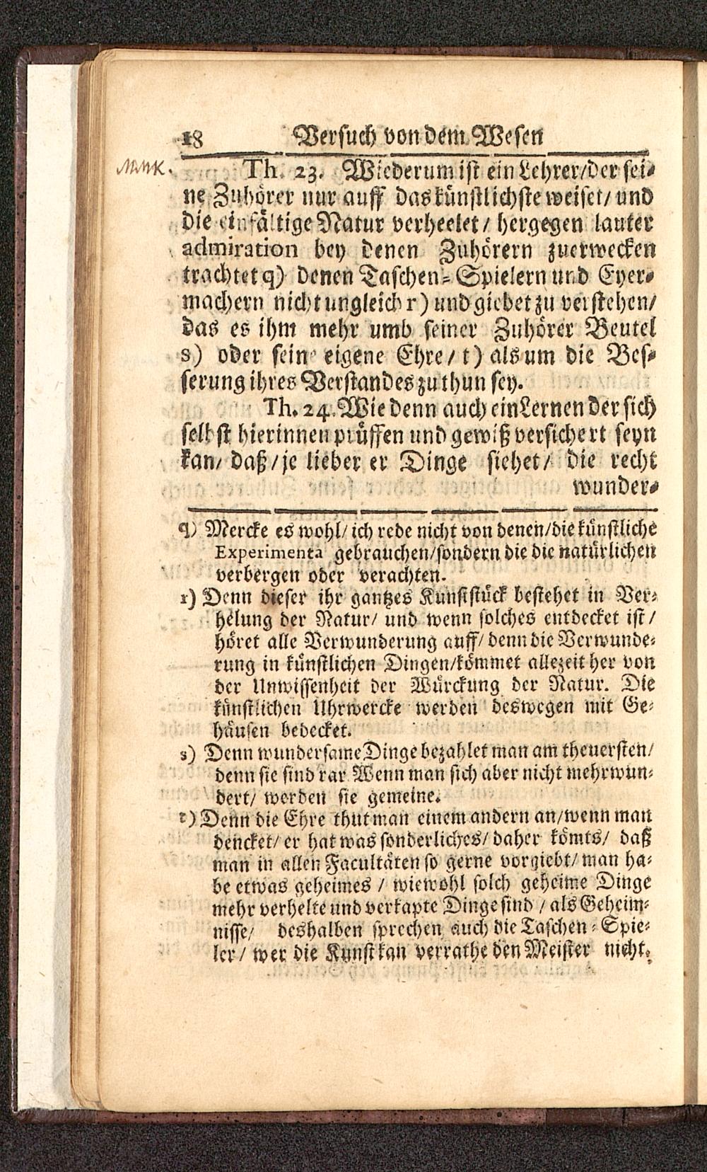 Versuch Von Wesen des Geistes Oder Grund-Lehren, So wohl zur natürlichen Wissenschafft als der Sitten-Lehre : Jn welchen gezeiget wird, daß Licht und Lufft ein geistiges Wesen sey, und alle Cörper aus Materie und Geist bestehen, auch in der gantzen Natur eine anziehende Krafft, in dem Menschen aber ein zweyfacher guter und böser Geist sey / Auffgesetzet und allen Wahrheit liebenden zur Prüfung übergeben Von Christian Thomasen