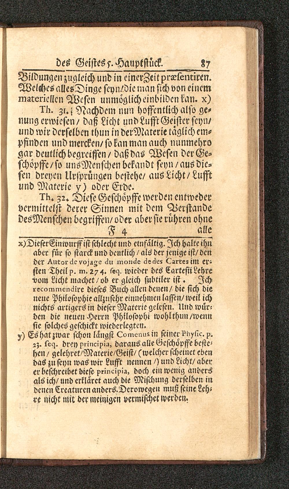 Versuch Von Wesen des Geistes Oder Grund-Lehren, So wohl zur natürlichen Wissenschafft als der Sitten-Lehre : Jn welchen gezeiget wird, daß Licht und Lufft ein geistiges Wesen sey, und alle Cörper aus Materie und Geist bestehen, auch in der gantzen Natur eine anziehende Krafft, in dem Menschen aber ein zweyfacher guter und böser Geist sey / Auffgesetzet und allen Wahrheit liebenden zur Prüfung übergeben Von Christian Thomasen